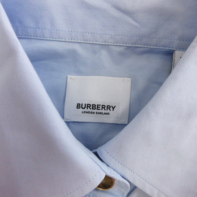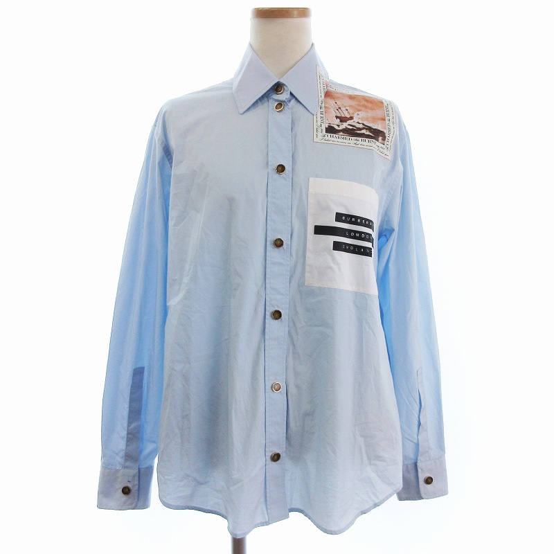 バーバリー BURBERRY コットン シャツ ブラウス 長袖 プリント ロゴ ブルー 34 ■ECT レディース