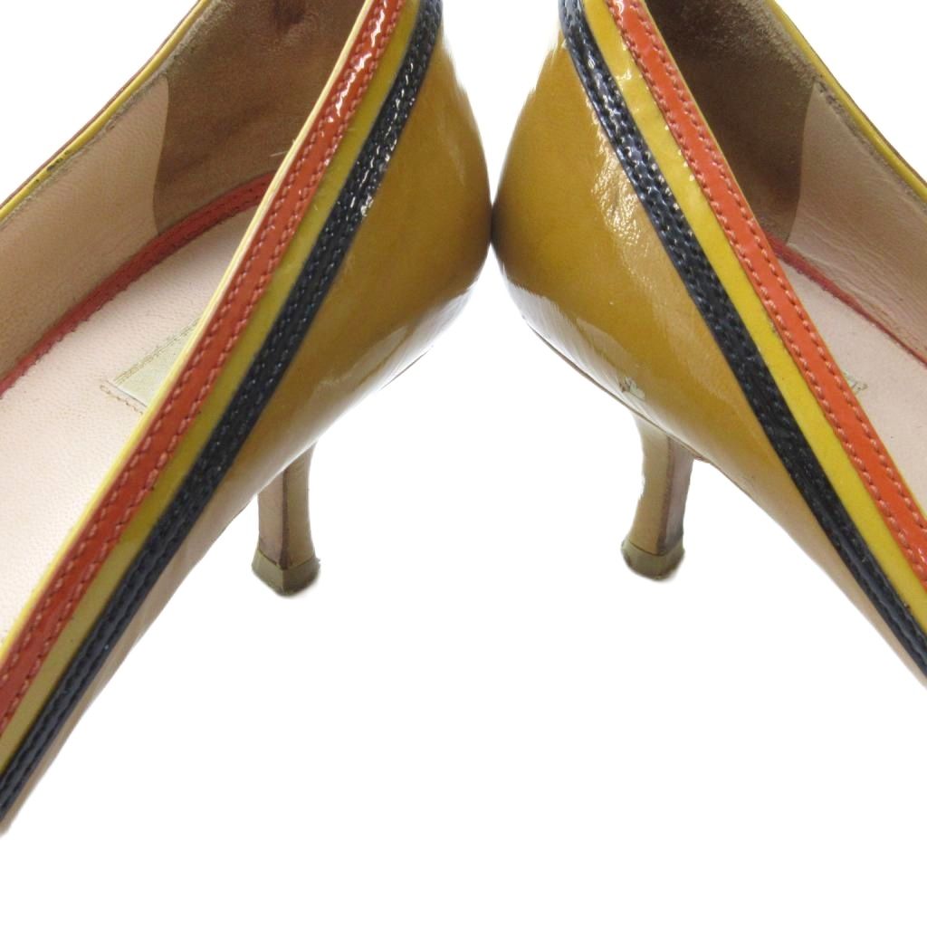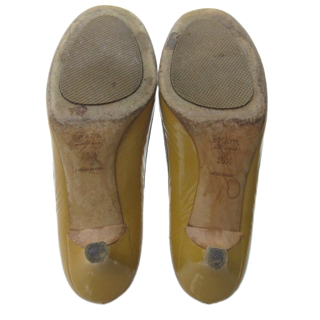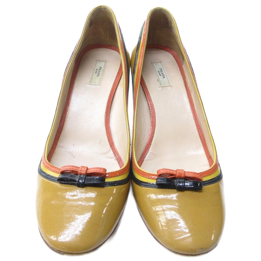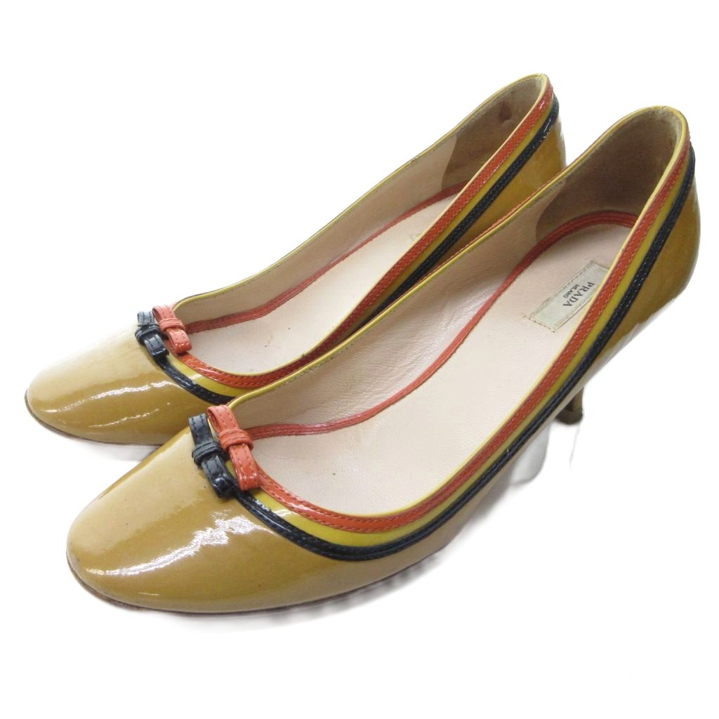プラダ PRADA エナメル リボン パンプス ラウンドトゥ ヒール ベージュ 約22.5cm IBO81 1016 レディース