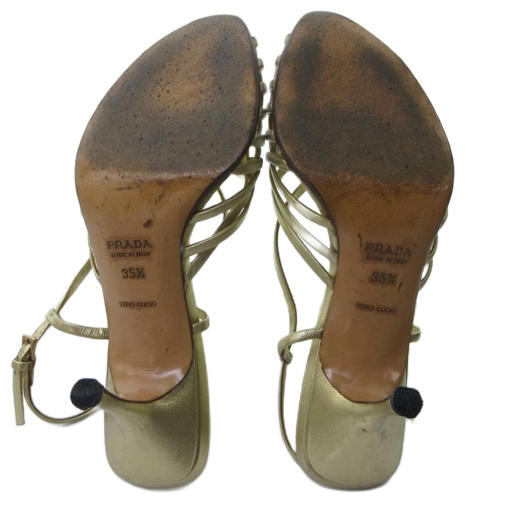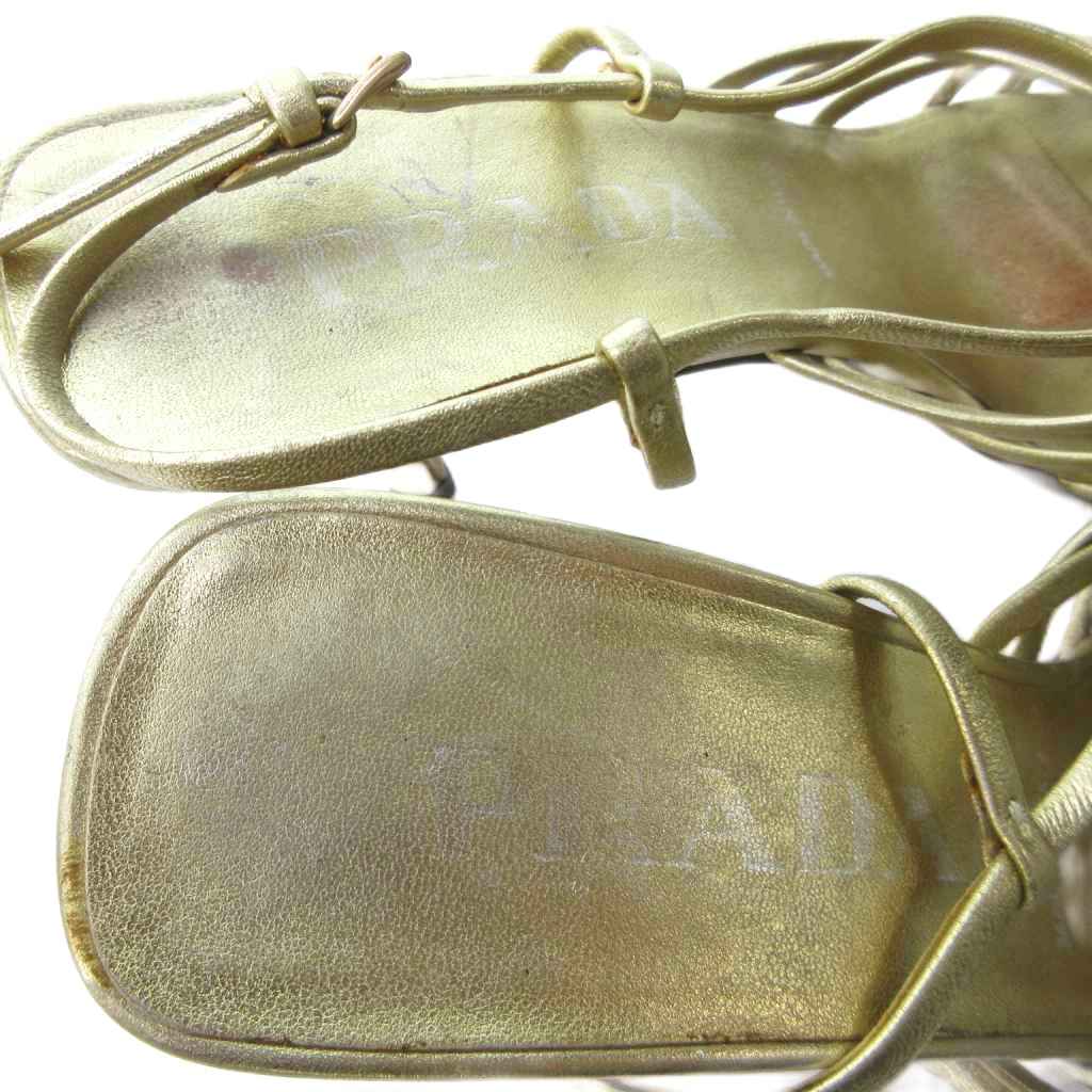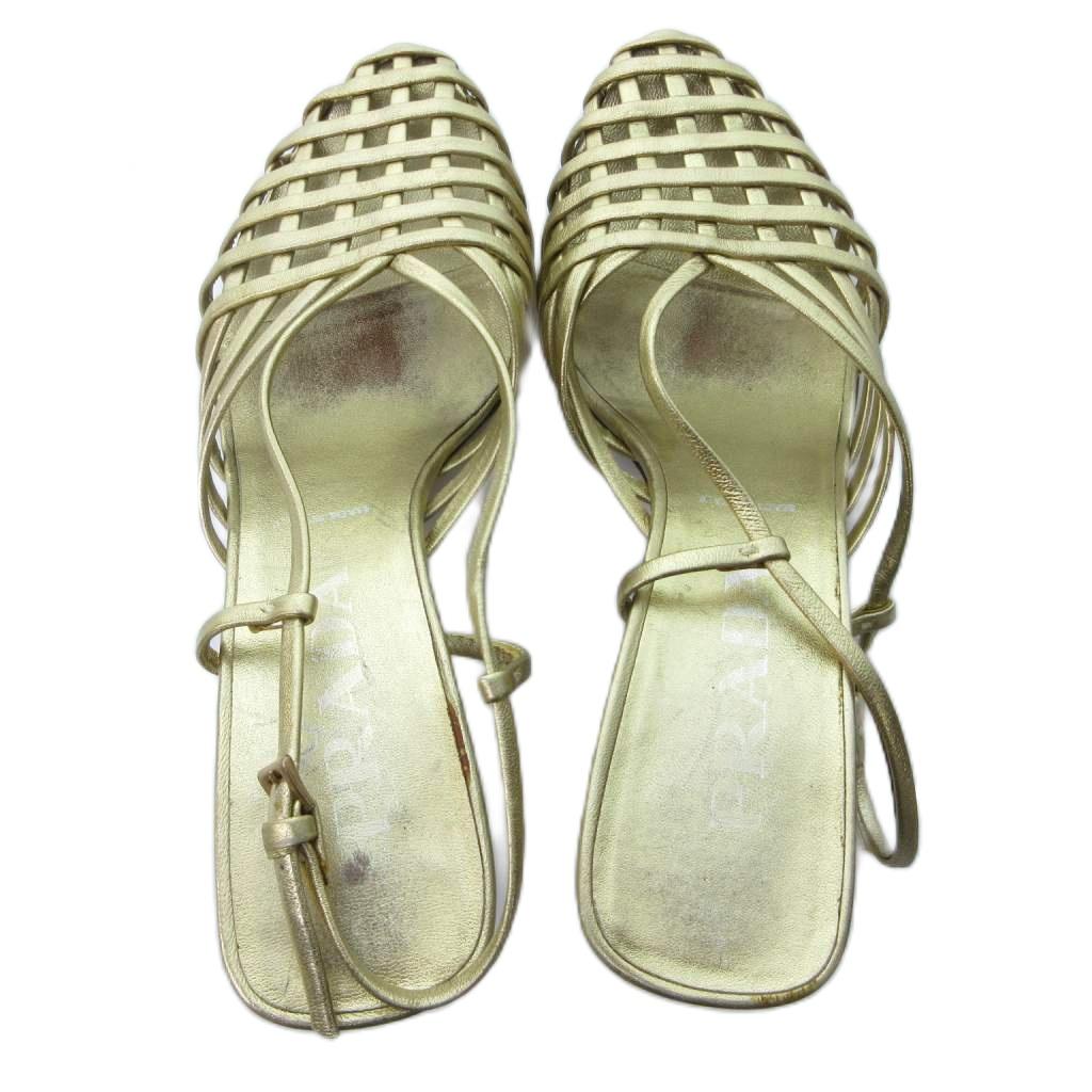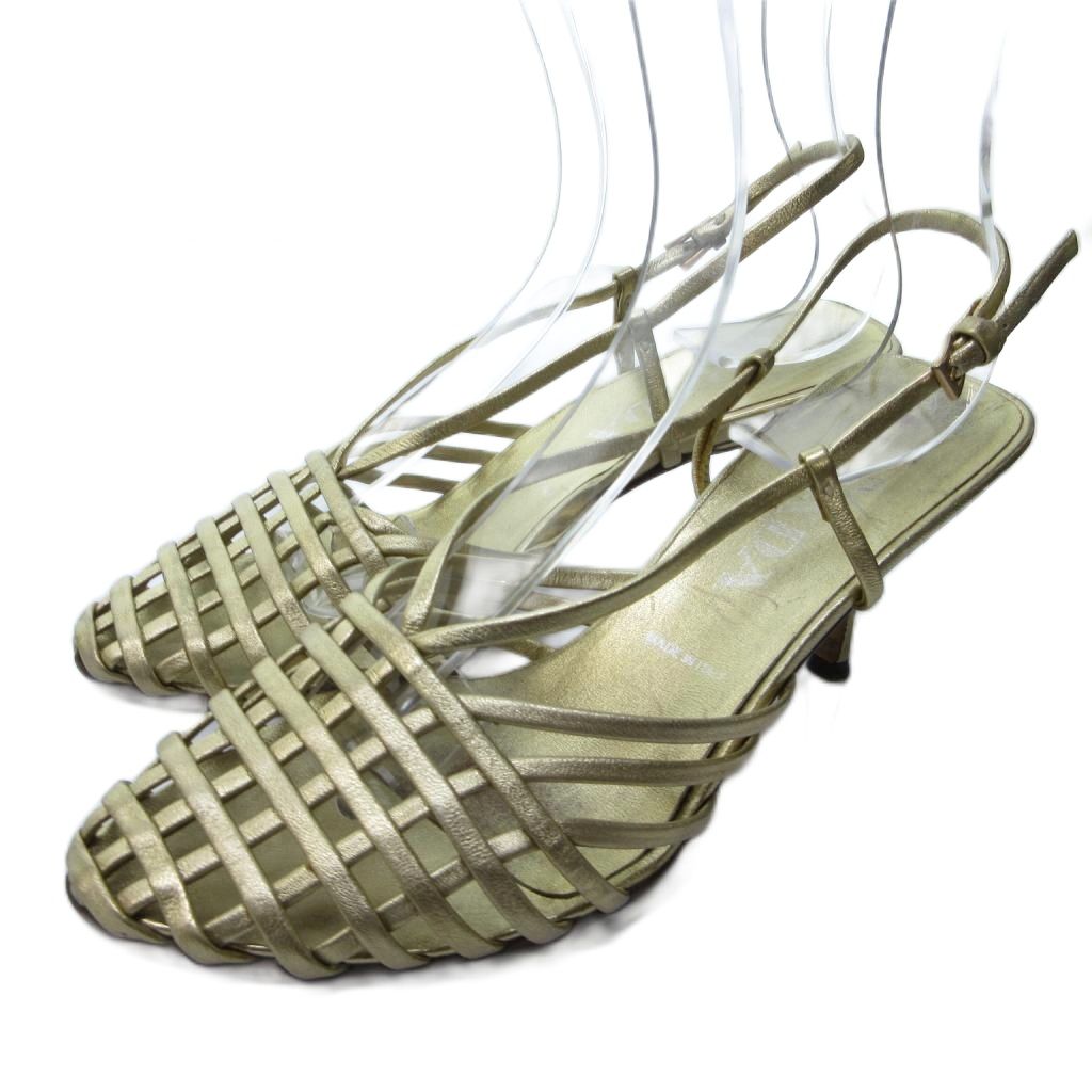 プラダ PRADA ストラップ 編み込み サンダル ミュール ラウンドトゥ ヒール ゴールド 約22.5cm IBO81 1016 レディース