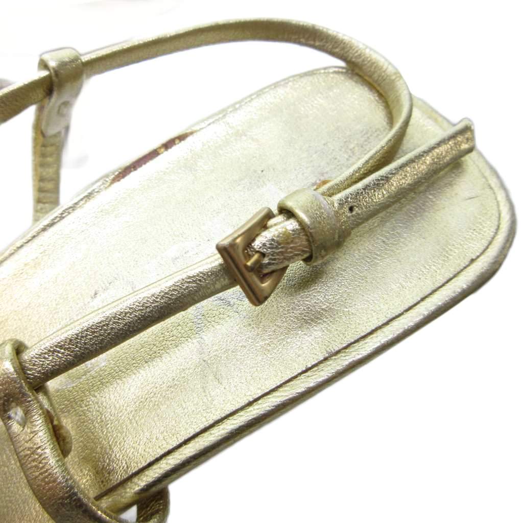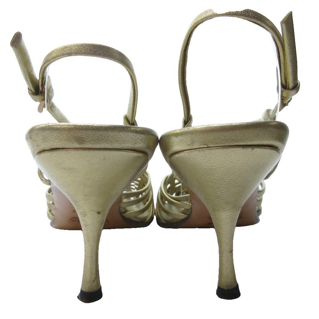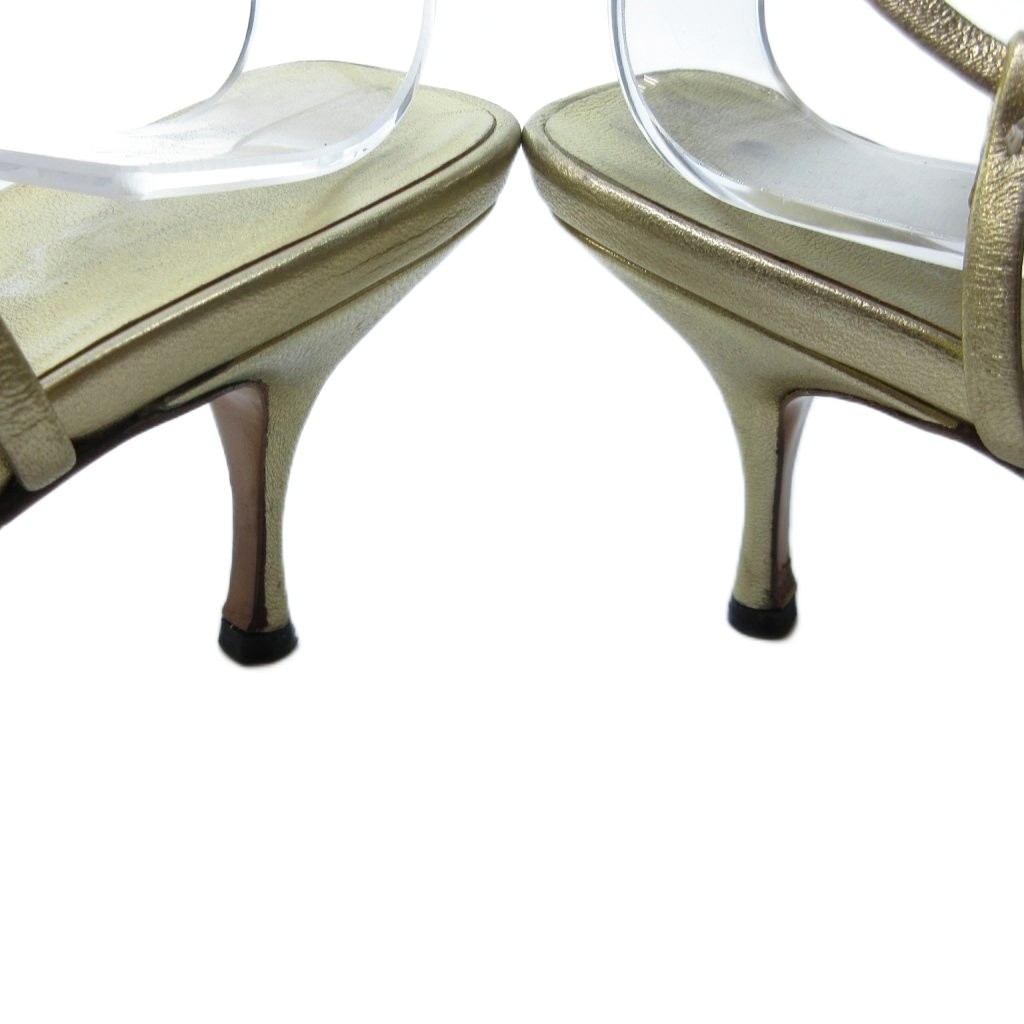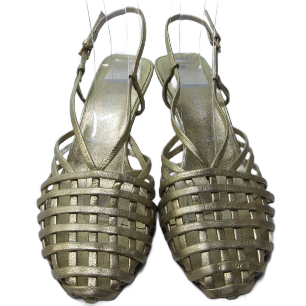 プラダ PRADA ストラップ 編み込み サンダル ミュール ラウンドトゥ ヒール ゴールド 約22.5cm IBO81 1016 レディース