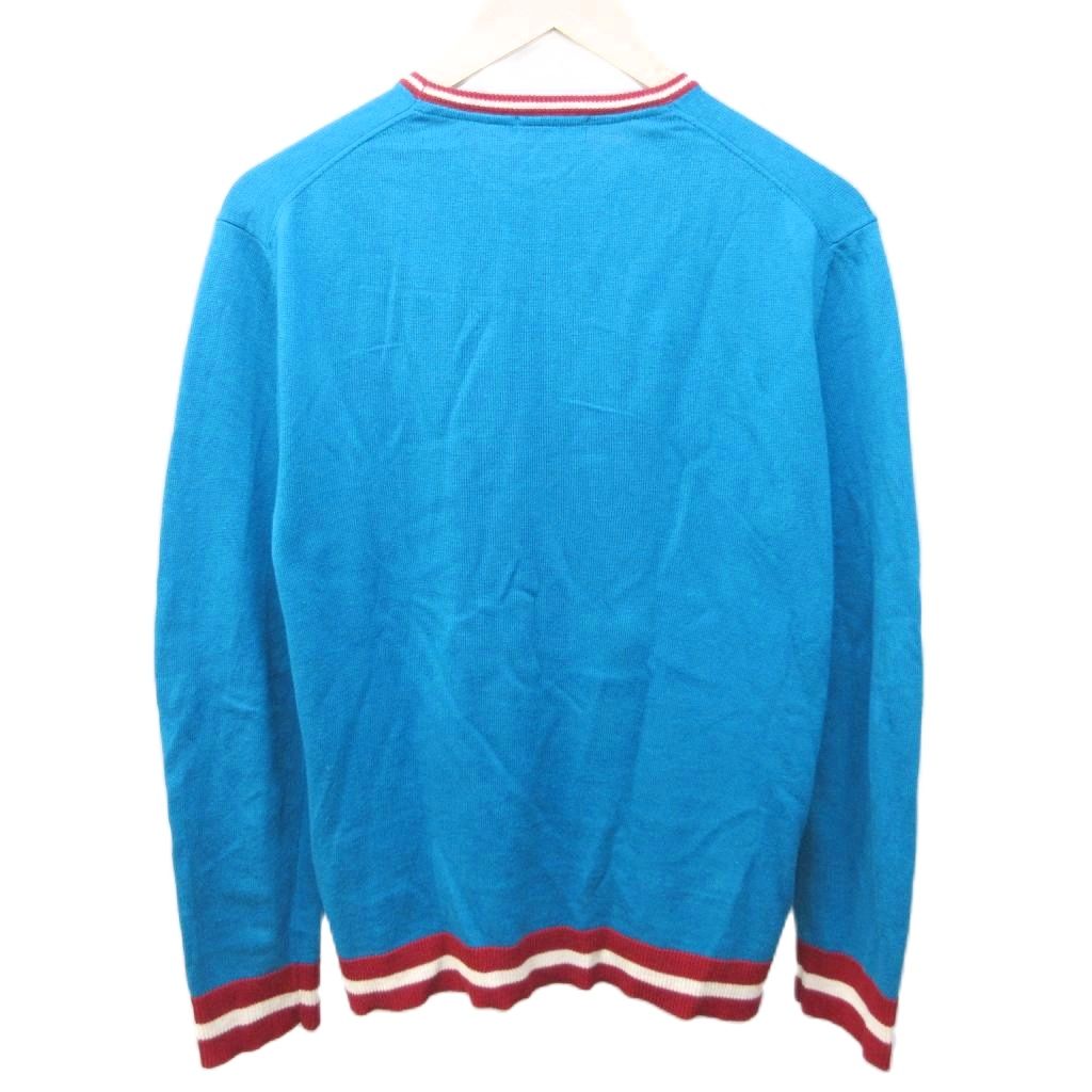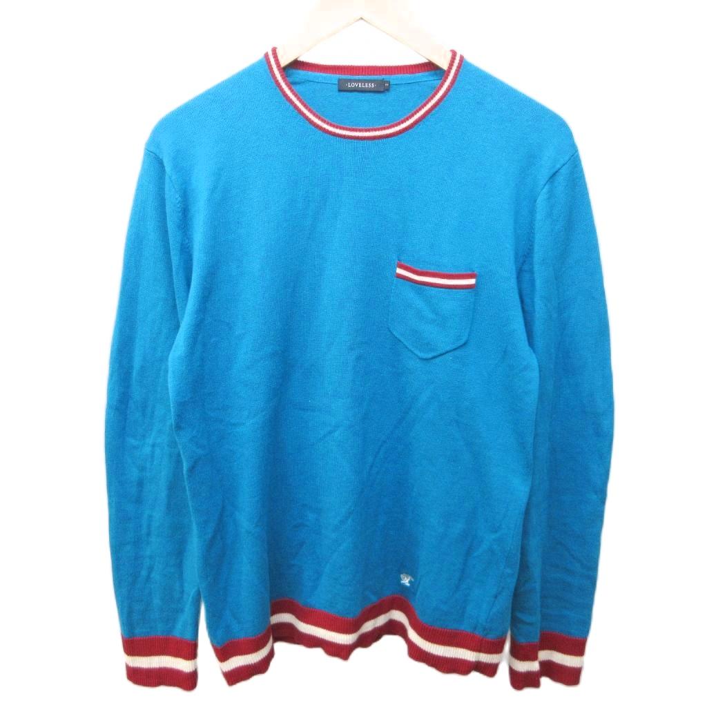 ラブレス LOVELESS ニット セーター シルク混 ロゴ刺繍 クルーネック 3 約L 青緑 系 1213 メンズ