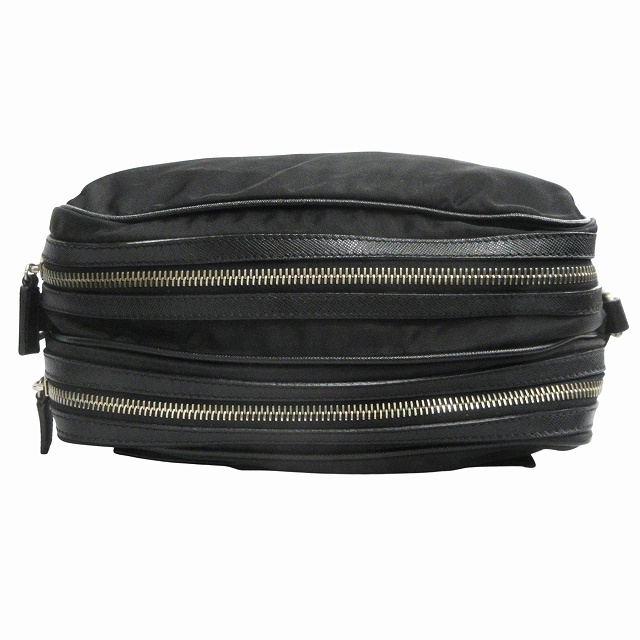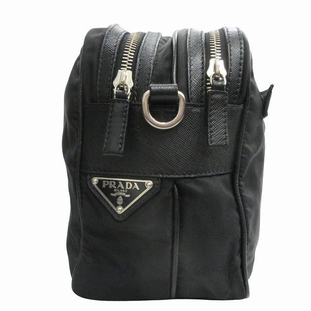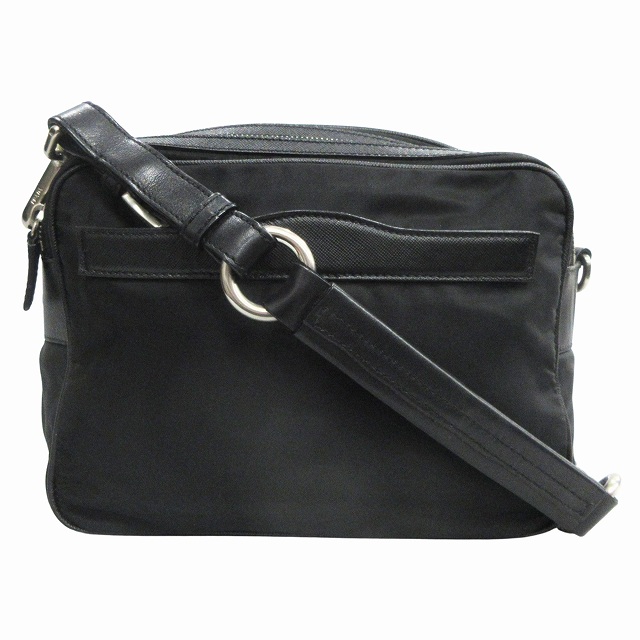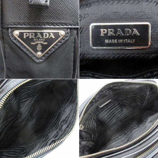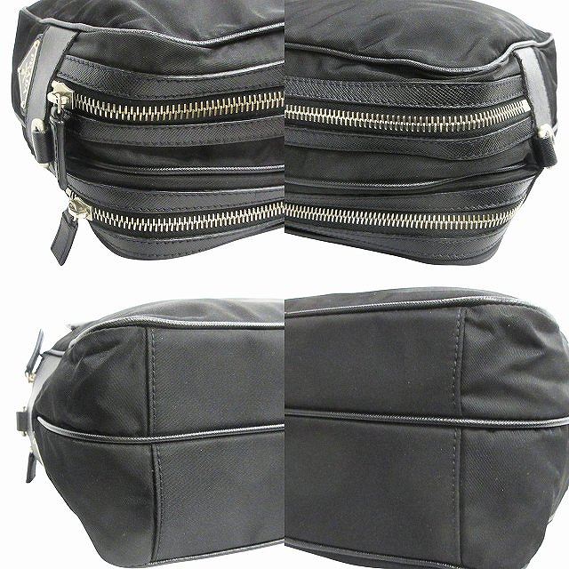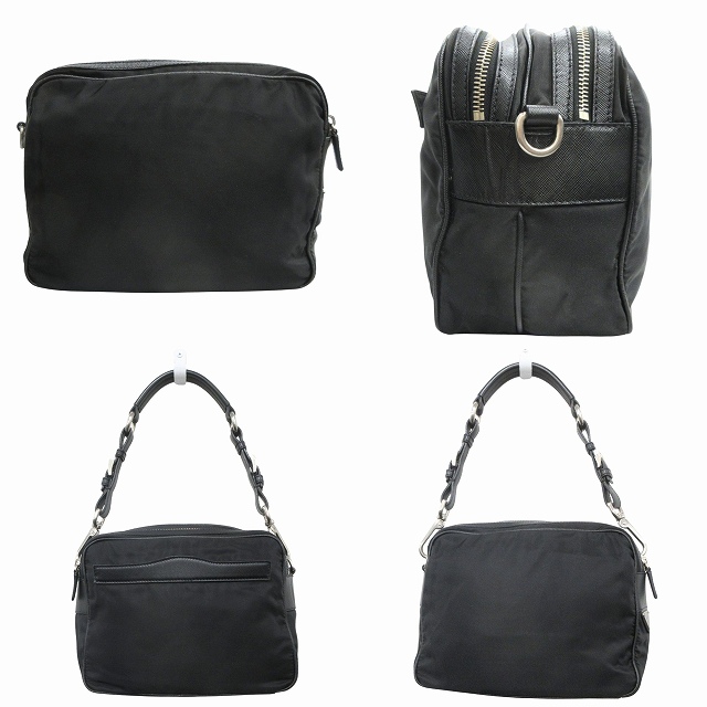 美品 プラダ PRADA ナイロン レザー ショルダー セミショルダー ハンド バッグ 鞄 トライアングルロゴ 三角ロゴプレート BR2158 黒 ブラック メンズ レディース ユニセックス