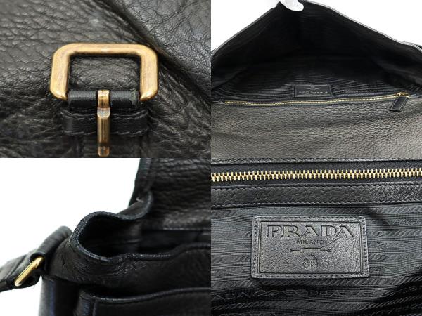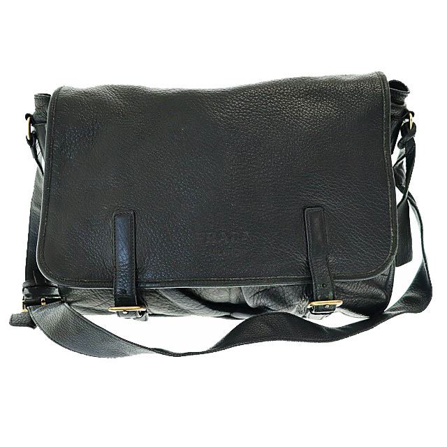 プラダ PRADA DEERSKIN shoulder bag ディアスキン レザー ショルダー メッセンジャー バッグ 黒 ブラック ブランド古着ベクトル 中古☆AA★●▲250815 メンズ