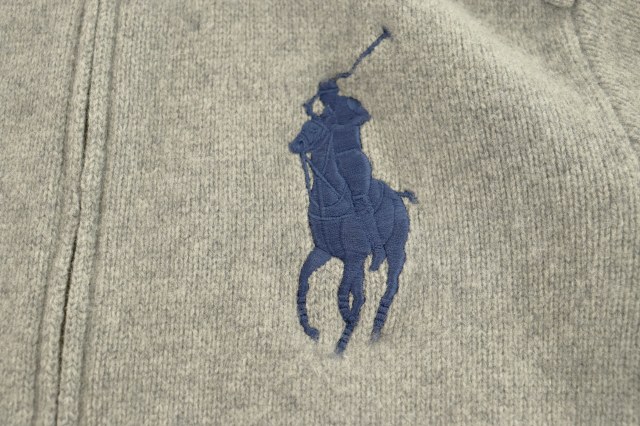 ラルフローレン RALPH LAUREN ビッグポニー ジップアップ ニット カーディガン L グレー ブランド古着ベクトル 中古 250923 メンズ