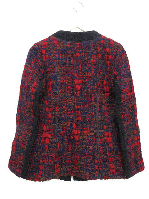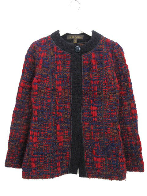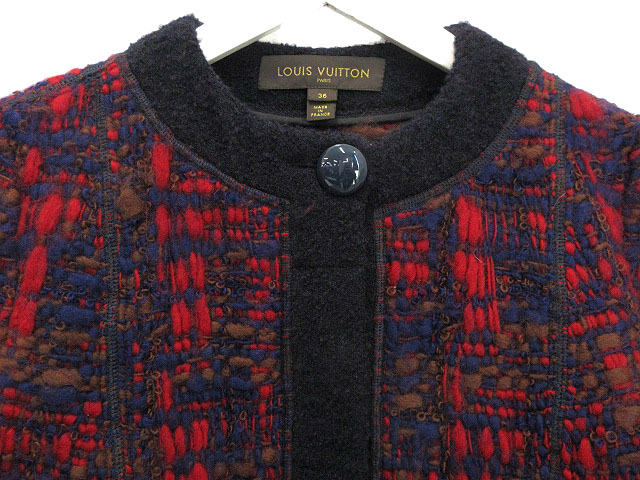ルイヴィトン LOUIS VUITTON ニット ツイード ノーカラー コート ジャケット 36 レッド 赤 ネイビー 紺 アウター 上着