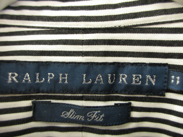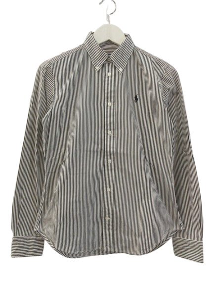 ラルフローレン RALPH LAUREN シャツ 長袖 ボタンダウン ストライプ ホワイト ブラック 綿 コットン スリムフィット 11号 トップス レディース