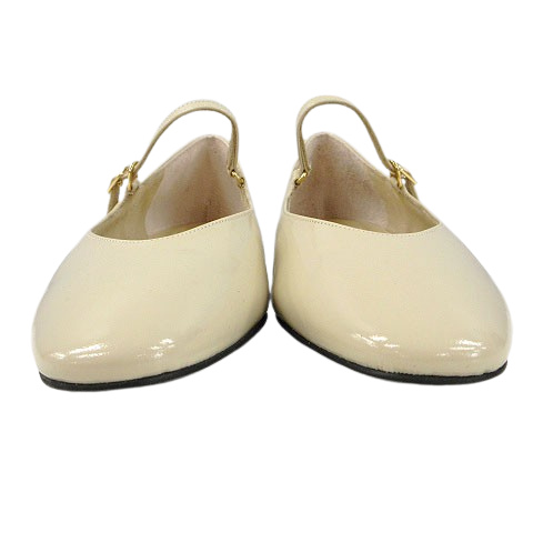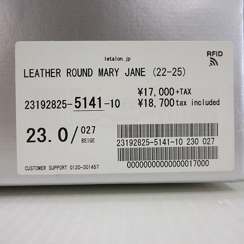 未使用品 ルタロン Le Talon GRISE レザーラウンドメリージェーン パンプス 23.0cm ベージュ 牛革 フラットシューズ 靴 レディース