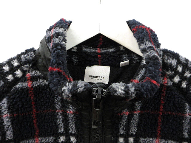 バーバリー BURBERRY フリース ジャケット チェック M ネイビー 紺 アウター 上着 ☆AA★ メンズ