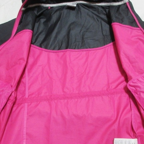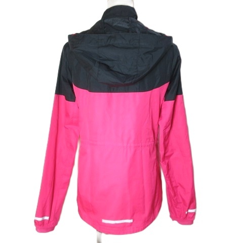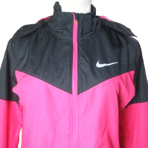 ナイキ NIKE ウィンドランナージャケット ブルゾン ランニングウェア ジップアップ フード ロゴ スウッシュ プリント S バイカラー 黒 ピンク ■YHS4 X レディース