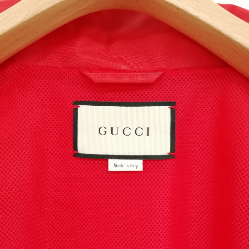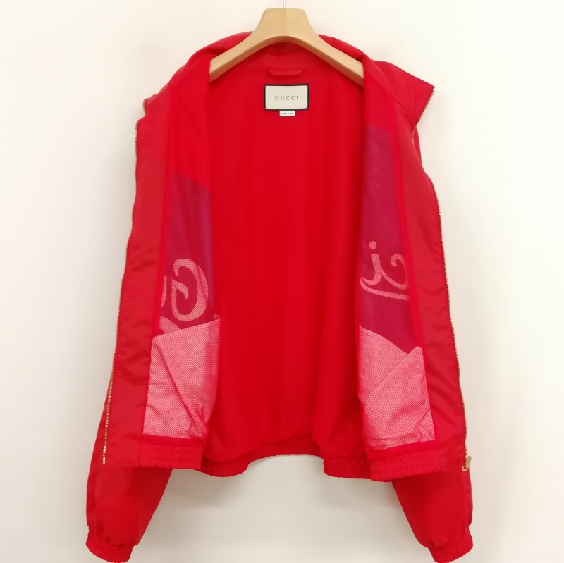 グッチ GUCCI 618900 20AW ロゴ 刺繍 ナイロン ジャケット ブルゾン 48 レッド ネイビー メンズ