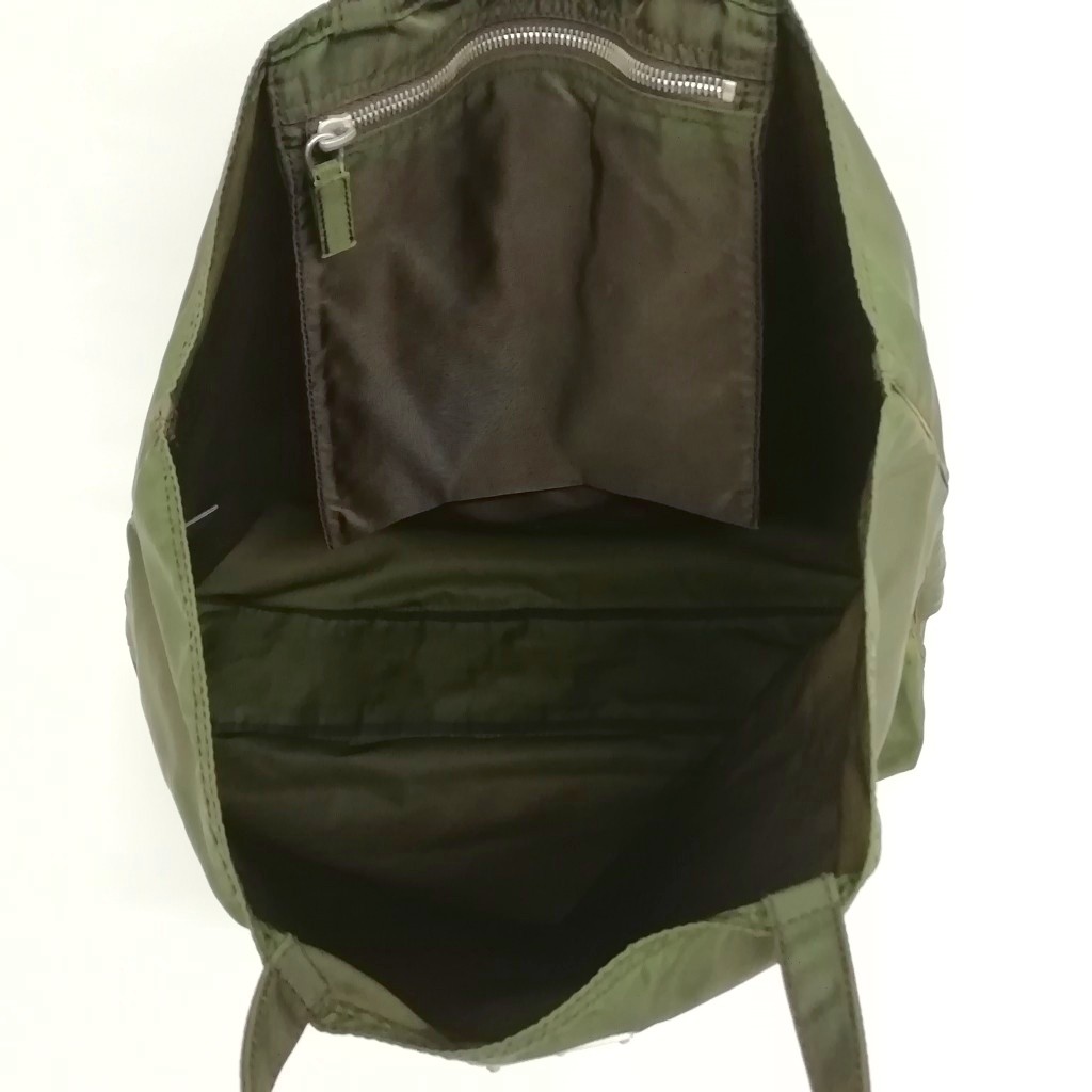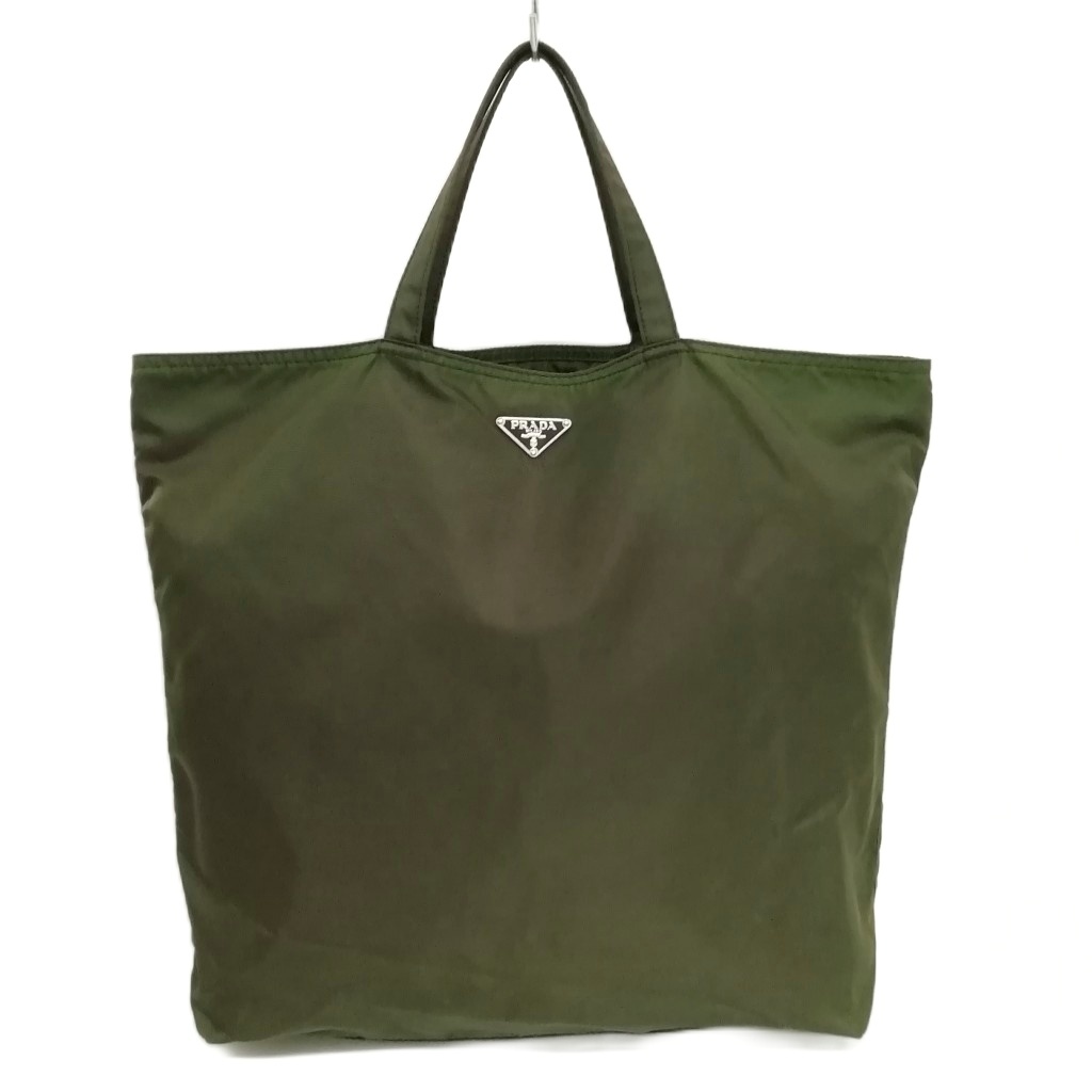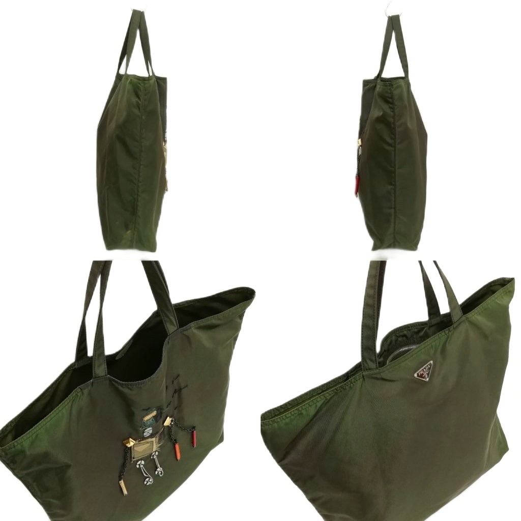 プラダ PRADA ポコノ ロボット ナイロン トートバッグ 三角プレート カーキ系 メンズ レディース