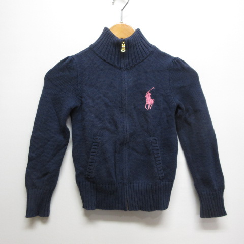 ラルフローレン RALPH LAUREN 子供服 ジップ ニット ブルゾン 120 紺 ネイビー ハイネック カーディガン ビッグポニー 正規品 キッズ