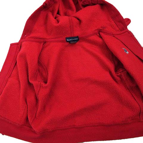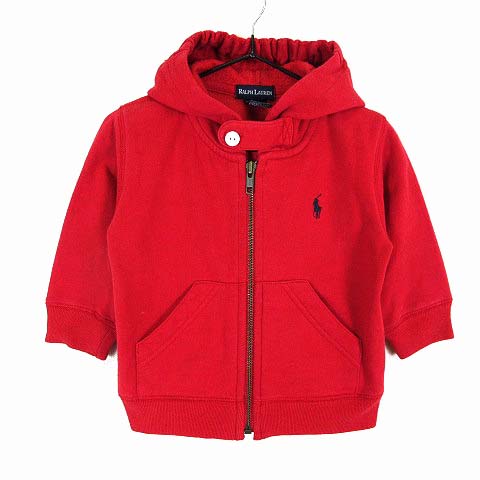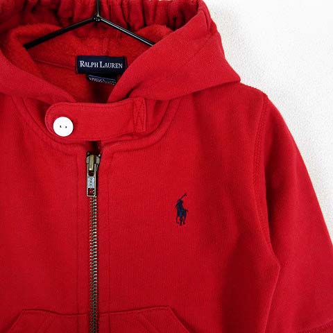ラルフローレン RALPH LAUREN パーカー スウェット ジップアップ ポニー ロゴ 刺繍 裏起毛 フード 長袖 80cm S 赤 レッド 紺 ネイビー キッズ