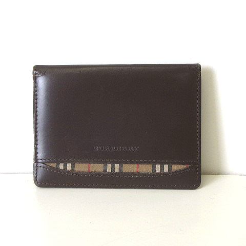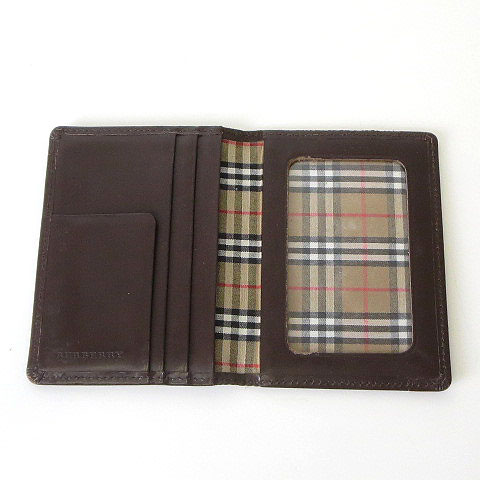 バーバリー BURBERRY パスケース カードケース 名刺入れ レザー ノバチェック ロゴ 茶 ブラウン メンズ レディース