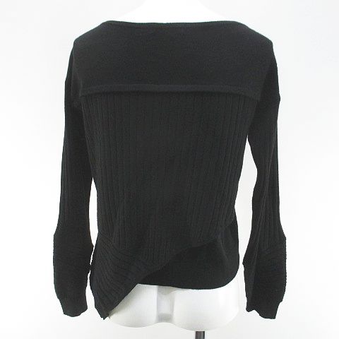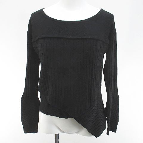 ラブレス LOVELESS 長袖 ニット セーター 34 黒系 ブラック アシンメトリー リブ 毛 ウール 無地 レディース