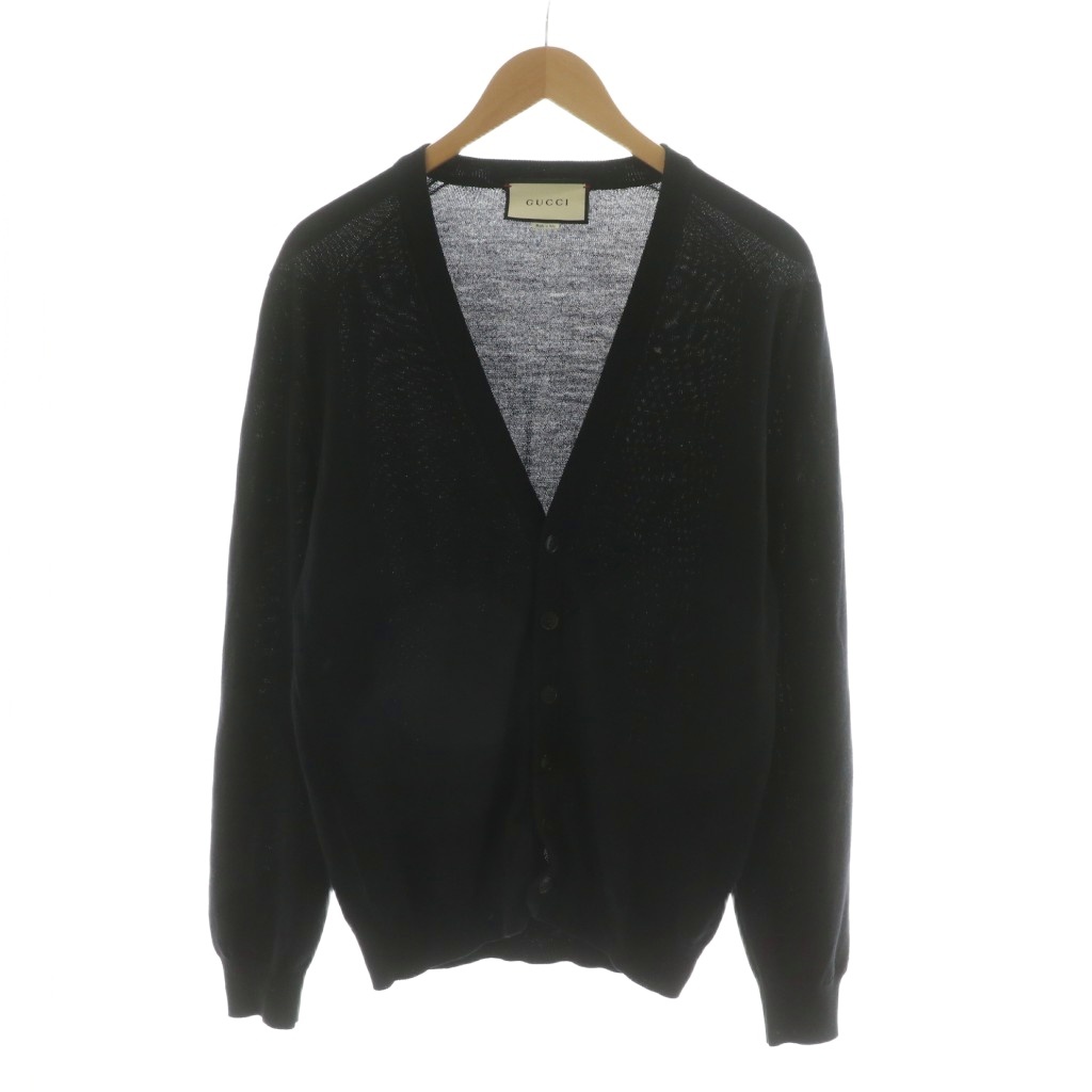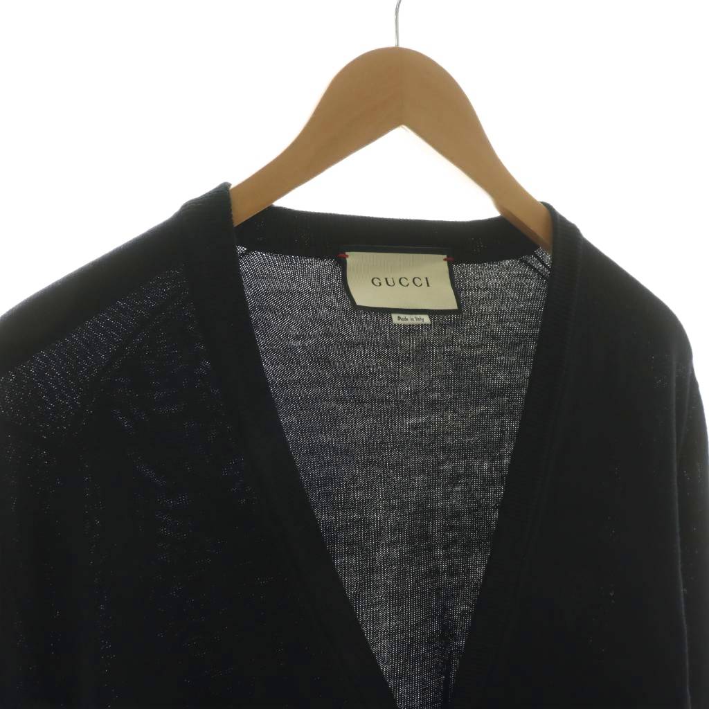 グッチ GUCCI カーディガン ニット Vネック 長袖 ロゴ刺繍 S ブラック 438134 /NQ メンズ