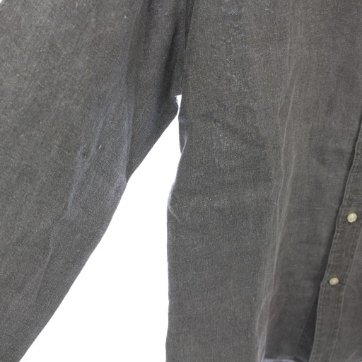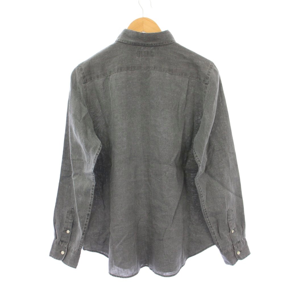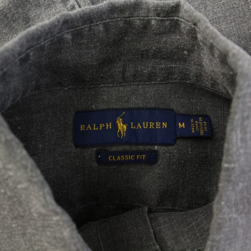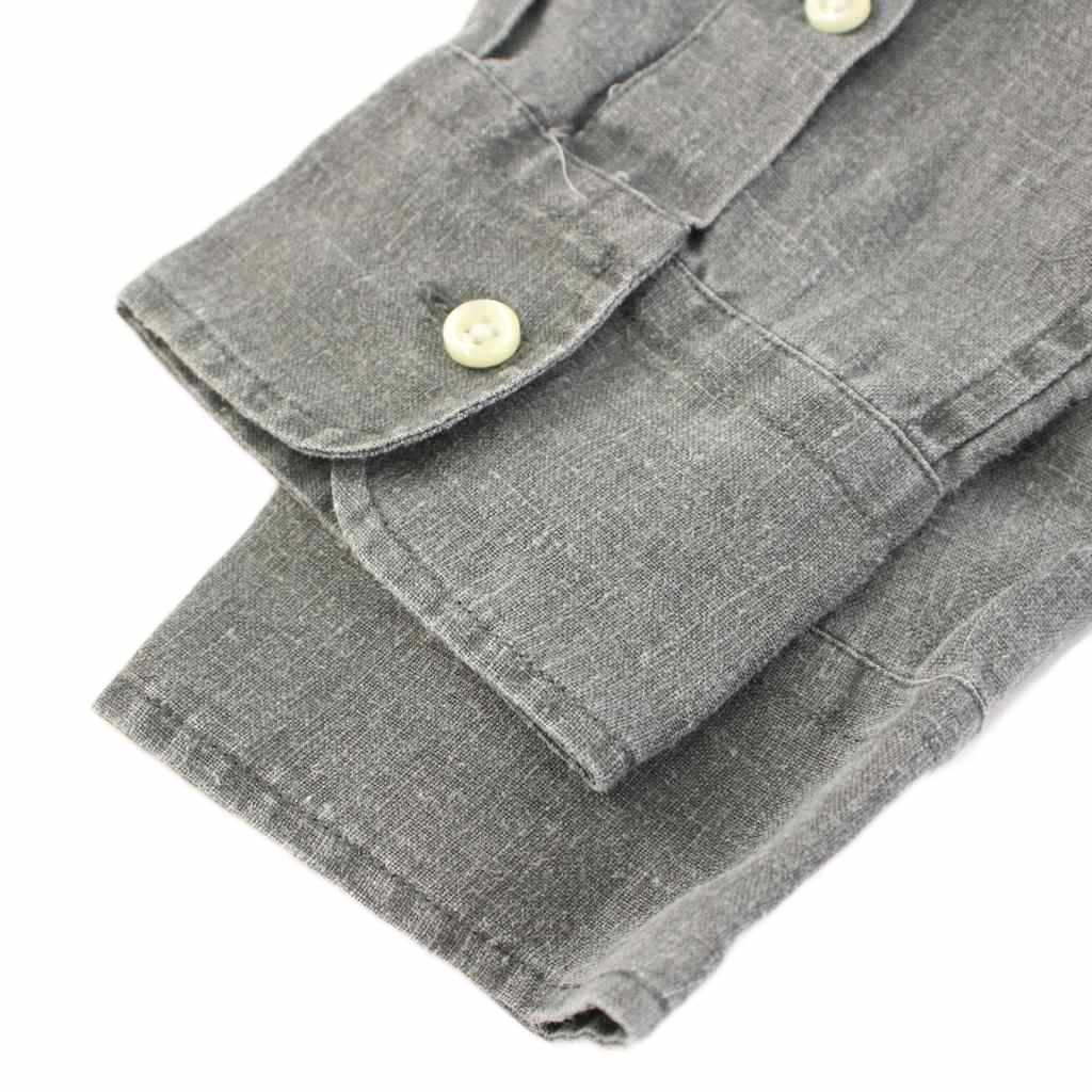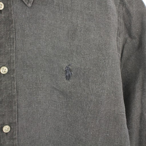 ラルフローレン RALPH LAUREN CLASSIC FIT ボタンダウンシャツ ブラウス 長袖 レギュラーカラー ロゴ 刺繍 ワンポイント 麻 リネン M グレー /BB レディース