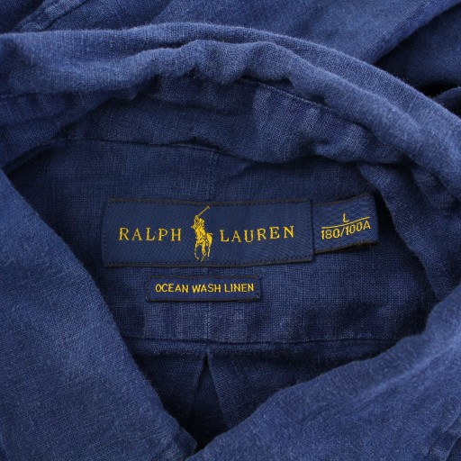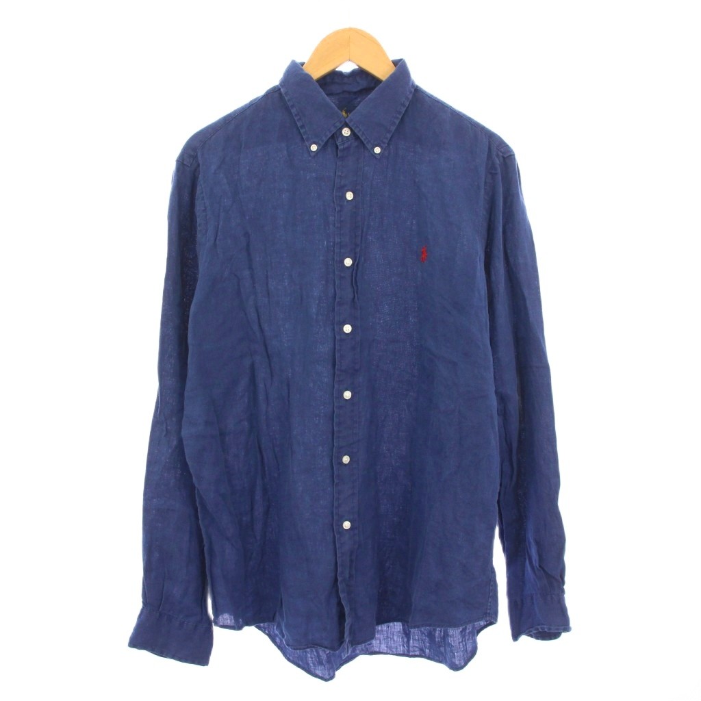 ラルフローレン RALPH LAUREN OCEAN WASH LINEN ボタンダウンシャツ カジュアル 長袖 レギュラーカラー ロゴ 刺繍 ワンポイント 麻 リネン L 紺 ネイビー /BB メンズ