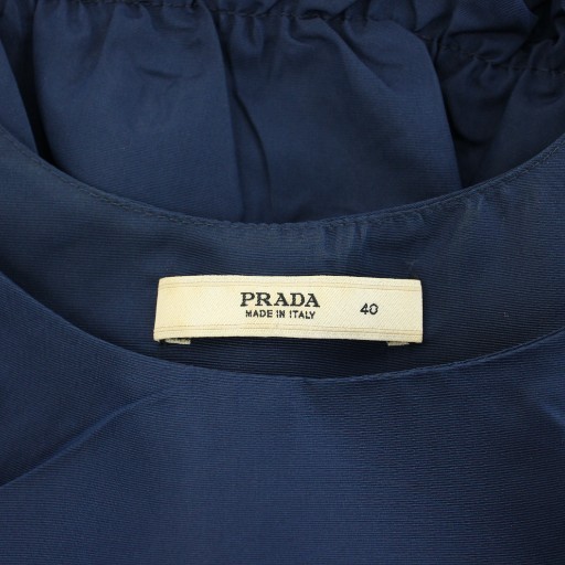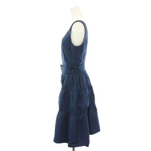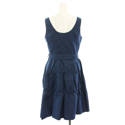 プラダ PRADA 2006年製 ワンピース ひざ丈 Uネック ノースリーブ ティアード ベルト 絹 シルク 40 紺 ネイビー /YT レディース