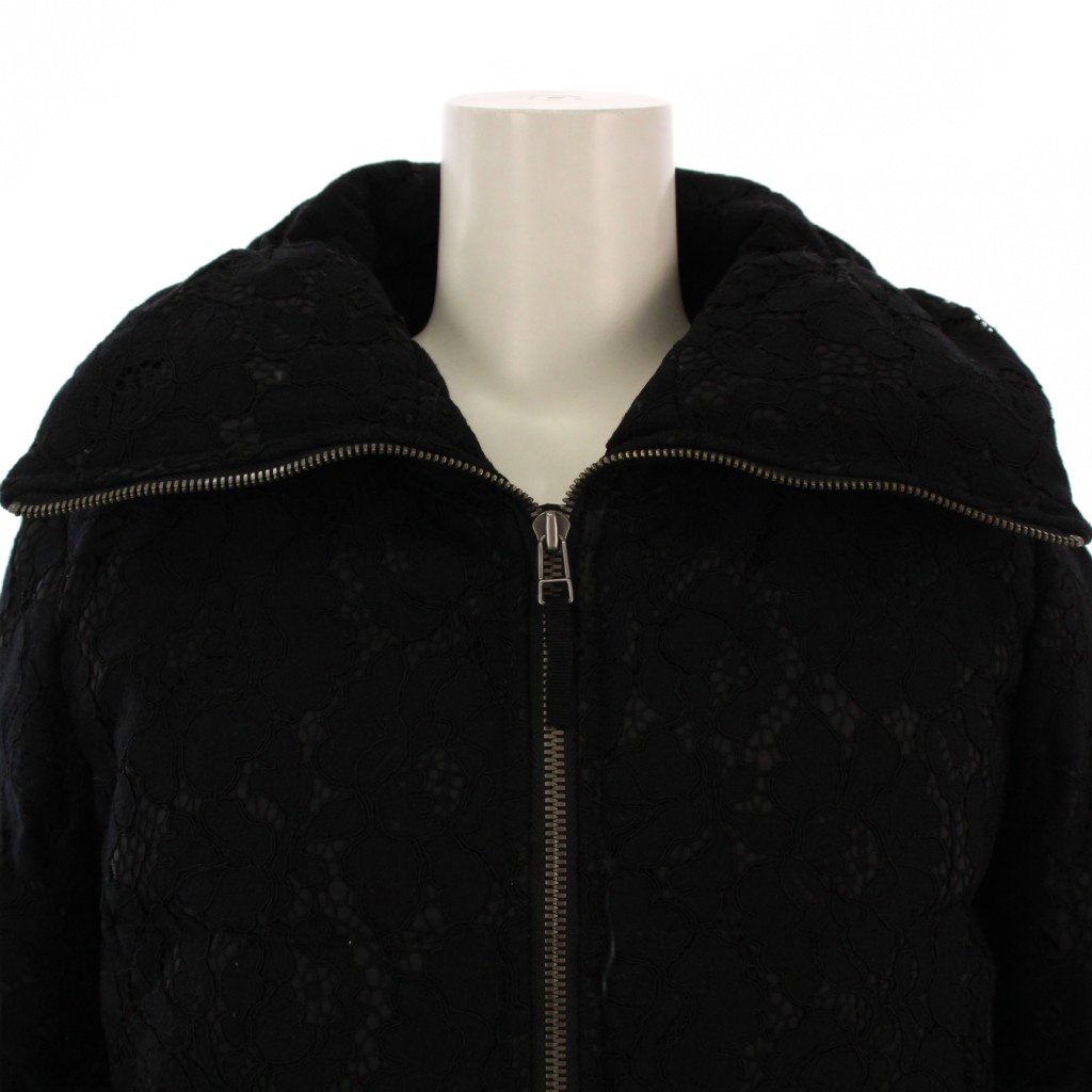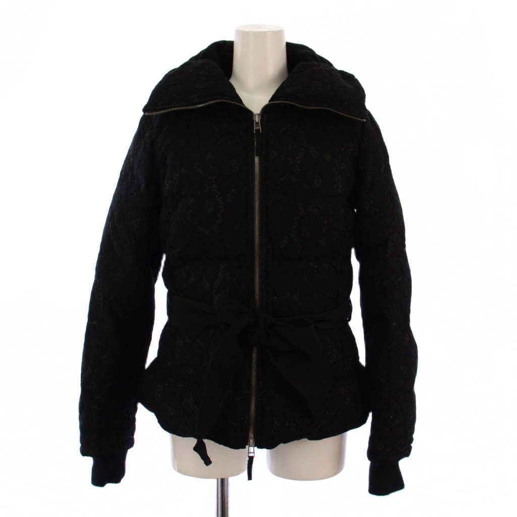 ポールカ PAULE KA ダウンジャケット ジップアップ 総レース 36 ブラック /BM レディース