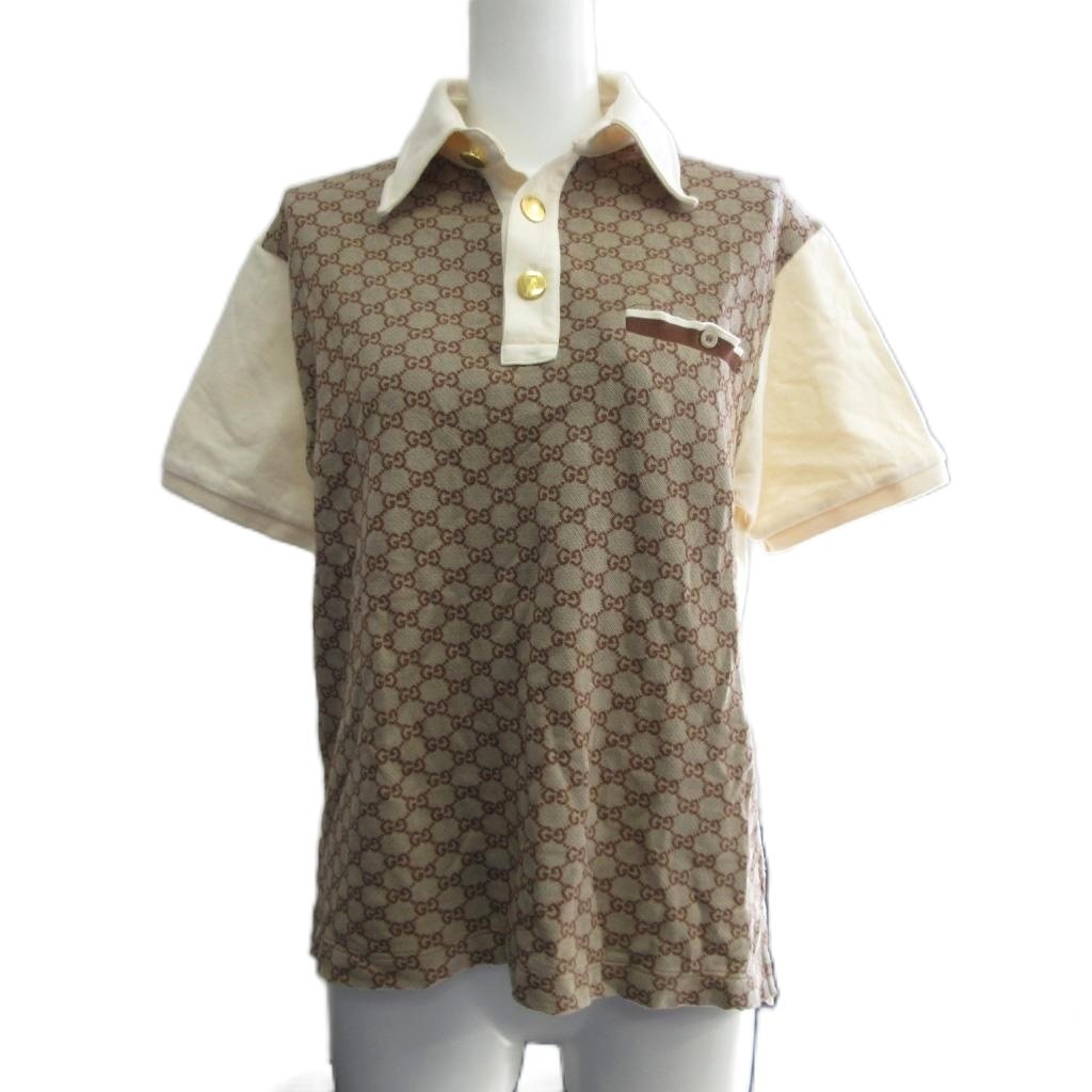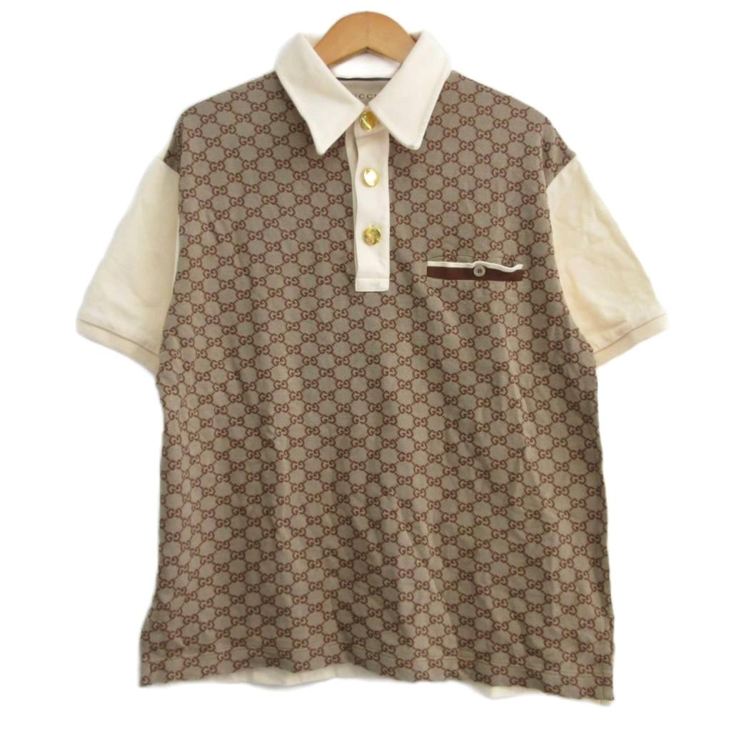 グッチ GUCCI 美品 22SS GGジャガード ポロシャツ 半袖 GG柄 GGスプリーム 金ボタン ブラウン系 XSサイズ ★AA☆ メンズ