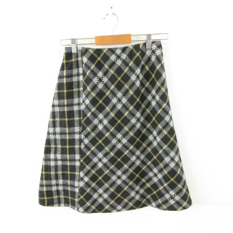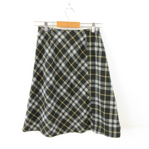 ケティ KETTY ひざ丈スカート 台形 チェック グレー 黒 M *A867 レディース