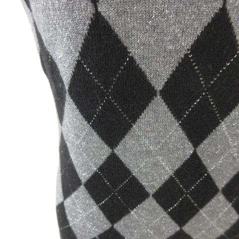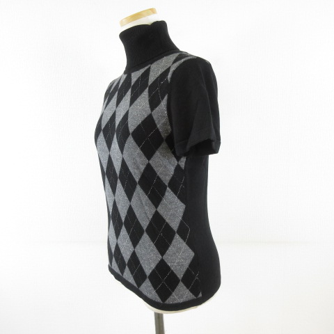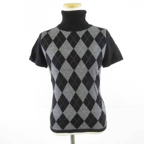ケティ KETTY ニット セーター 半袖 タートルネック アーガイルチェック 黒 M *T404 レディース