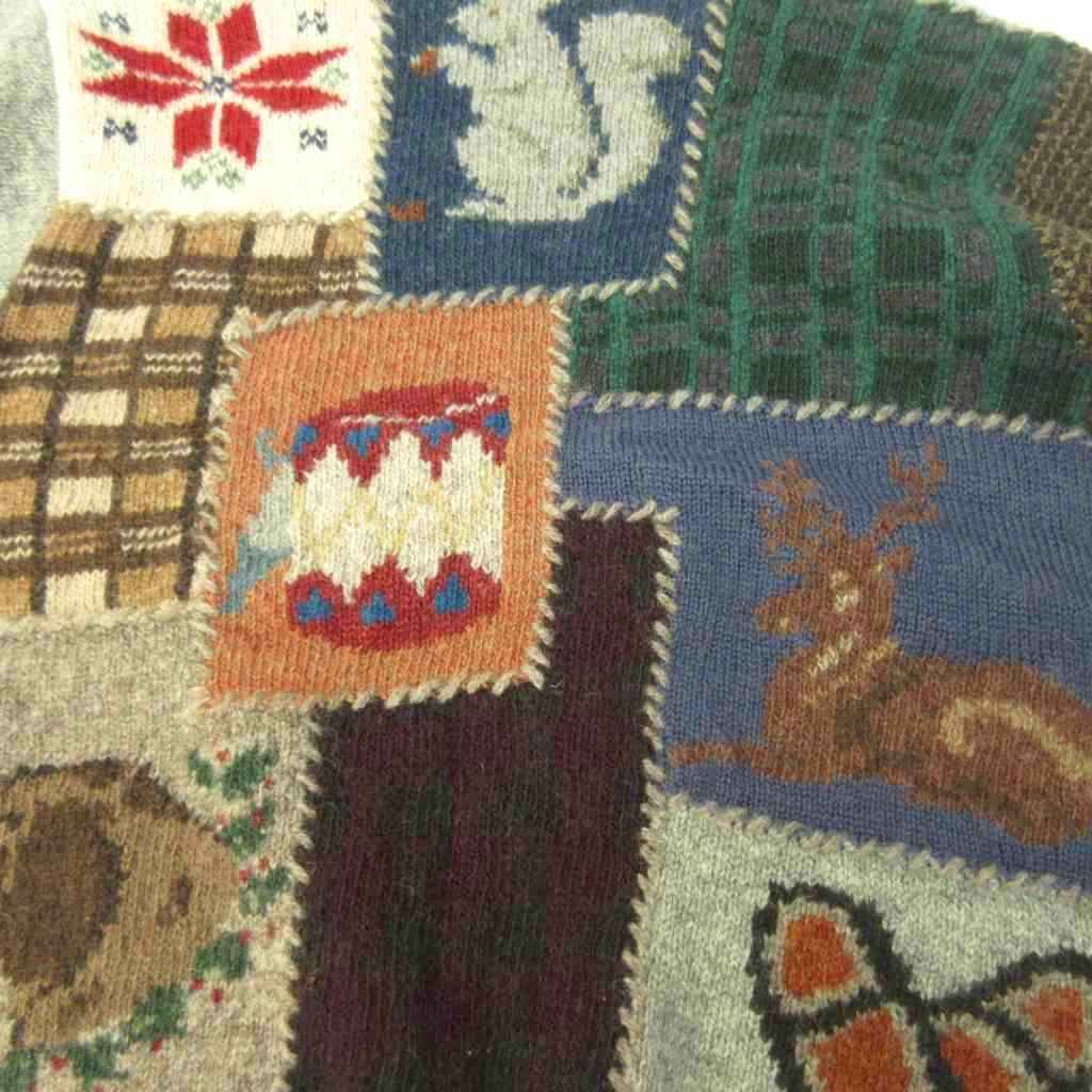 ラルフローレン RALPH LAUREN カントリー COUNTRY ヴィンテージ 80s 90s ニット セーター パッチワーク 総柄 ウール 長袖 M マルチカラー 1005 ☆AA★ メンズ