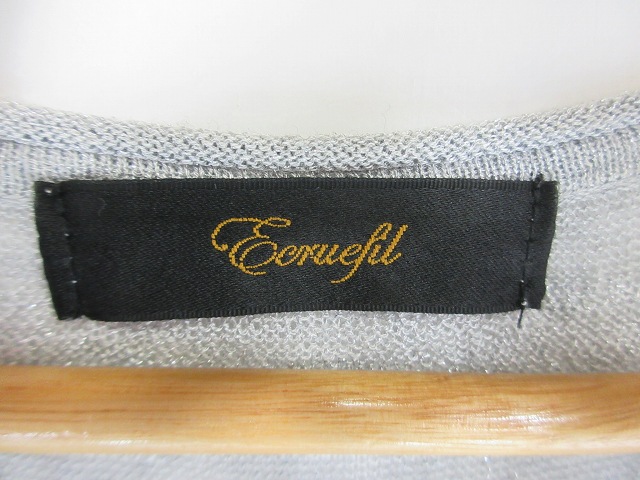 ケティ KETTY ecruefil ニット カーディガン 七分袖 ボタン ラメ グレー サイズM QQQ レディース