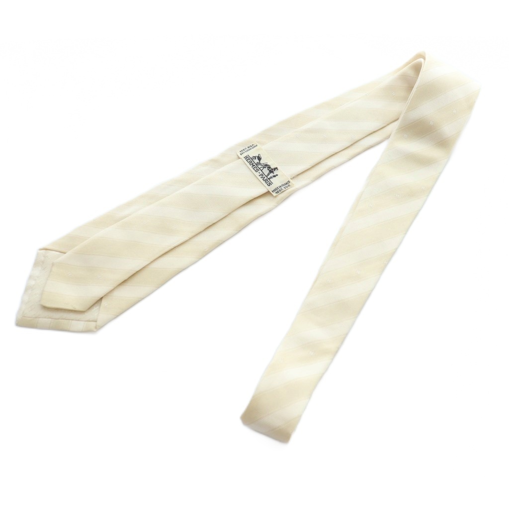 エルメス HERMES ネクタイ 絹 シルク ストライプ Hロゴ レギュラータイ ベージュ ■GY03 /MQ ■OH メンズ