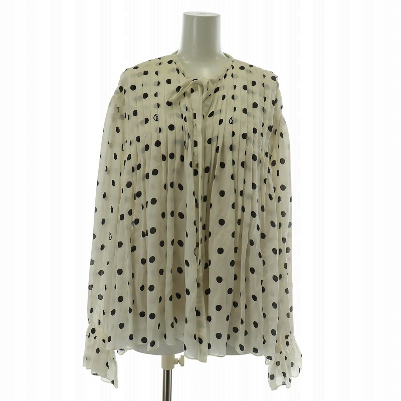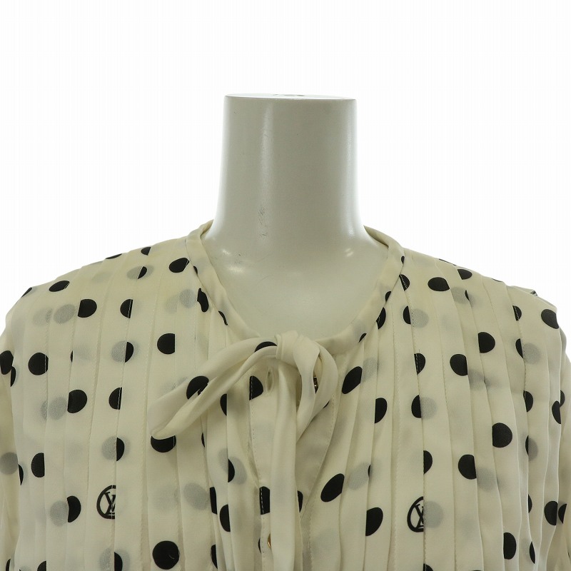 ルイヴィトン LOUIS VUITTON 22SS シャツ ブラウス 長袖 絹 シルク ドット 水玉 ぺチキャミソール付き 34 XS 白 黒 ホワイト ブラック RW221B NR1 FMTO71 /XZ ■GY17 レディース
