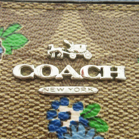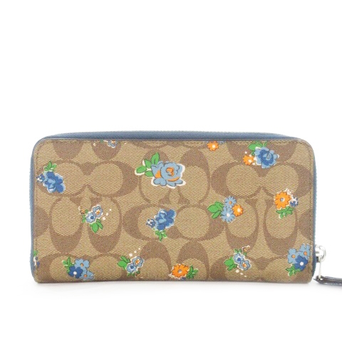 コーチ COACH 長財布 ロングウォレット 小銭入れあり レザー シグネチャー ロゴ 花柄 ラウンドファスナー 茶 ブラウン 青 ブルー /AH15 ■GY18 レディース