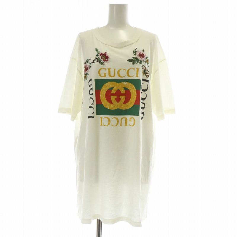グッチ GUCCI 457094 Tシャツ カットソー 半袖 クルーネック 花 フラワー 刺繍 インターロッキングG ロゴ シェリーライン オーバーサイズ L 白 ホワイト /XZ ■GY18 レディース