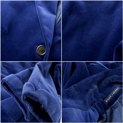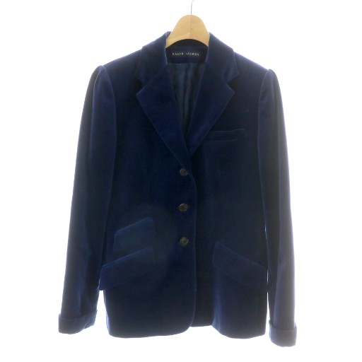 ラルフローレン RALPH LAUREN テーラードジャケット ブレザー 長袖 アウター ベロア 総裏地 サイドベンツ 日本製 青 ブルー /MP ■GY18 レディース