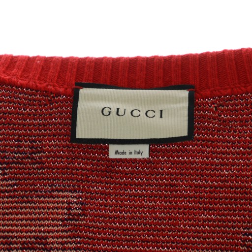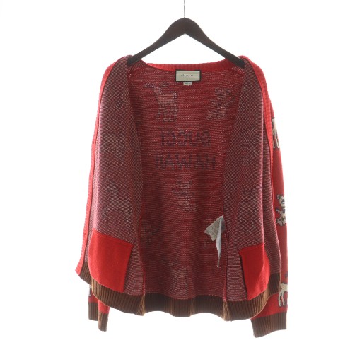 グッチ GUCCI HAWAII カーディガン ウール コットン ニット Vネック アニマル 総柄 赤 レッド ■GY18 /MQ メンズ