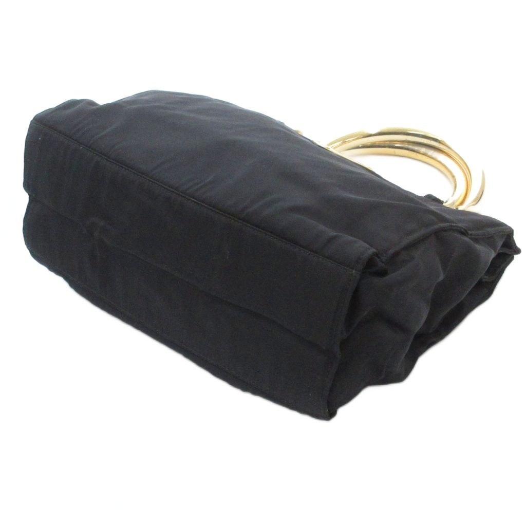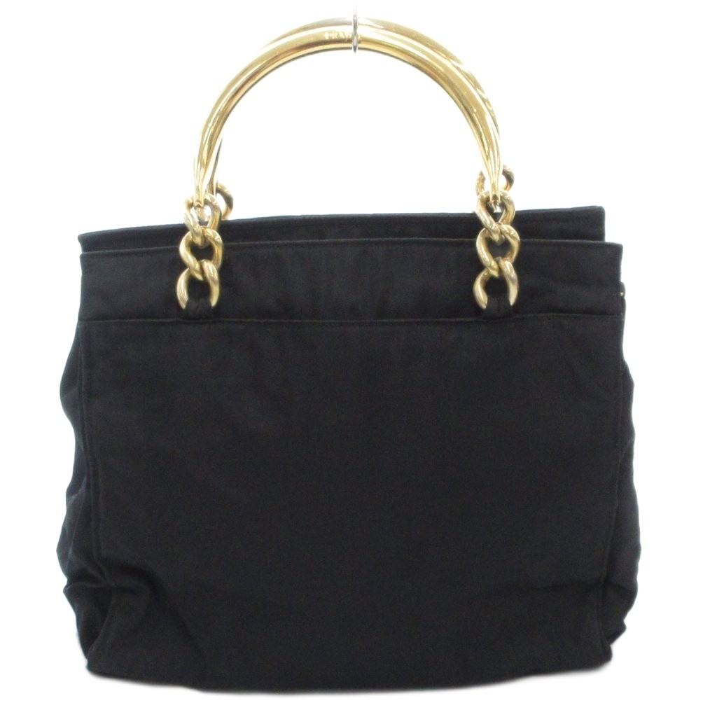 プラダ PRADA ハンドバッグ ロゴ 三角プレート メタルハンドル チェーン ナイロン 黒 ブラック /AE ■GY18 レディース