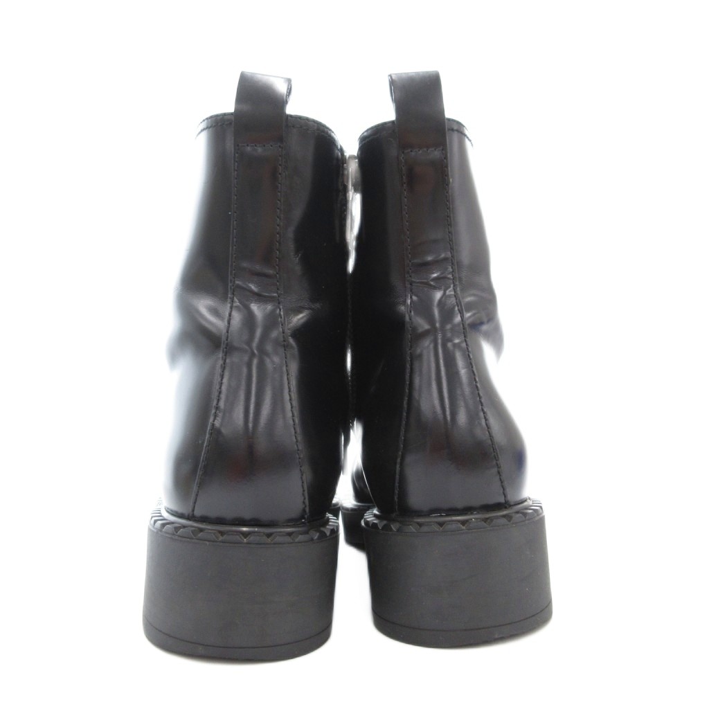 プラダ PRADA ショートブーツ 38.5 25.5cm シューズ レザー 本革 レースアップ サイドジップ 黒 ブラック /AE ■GY18 メンズ レディース
