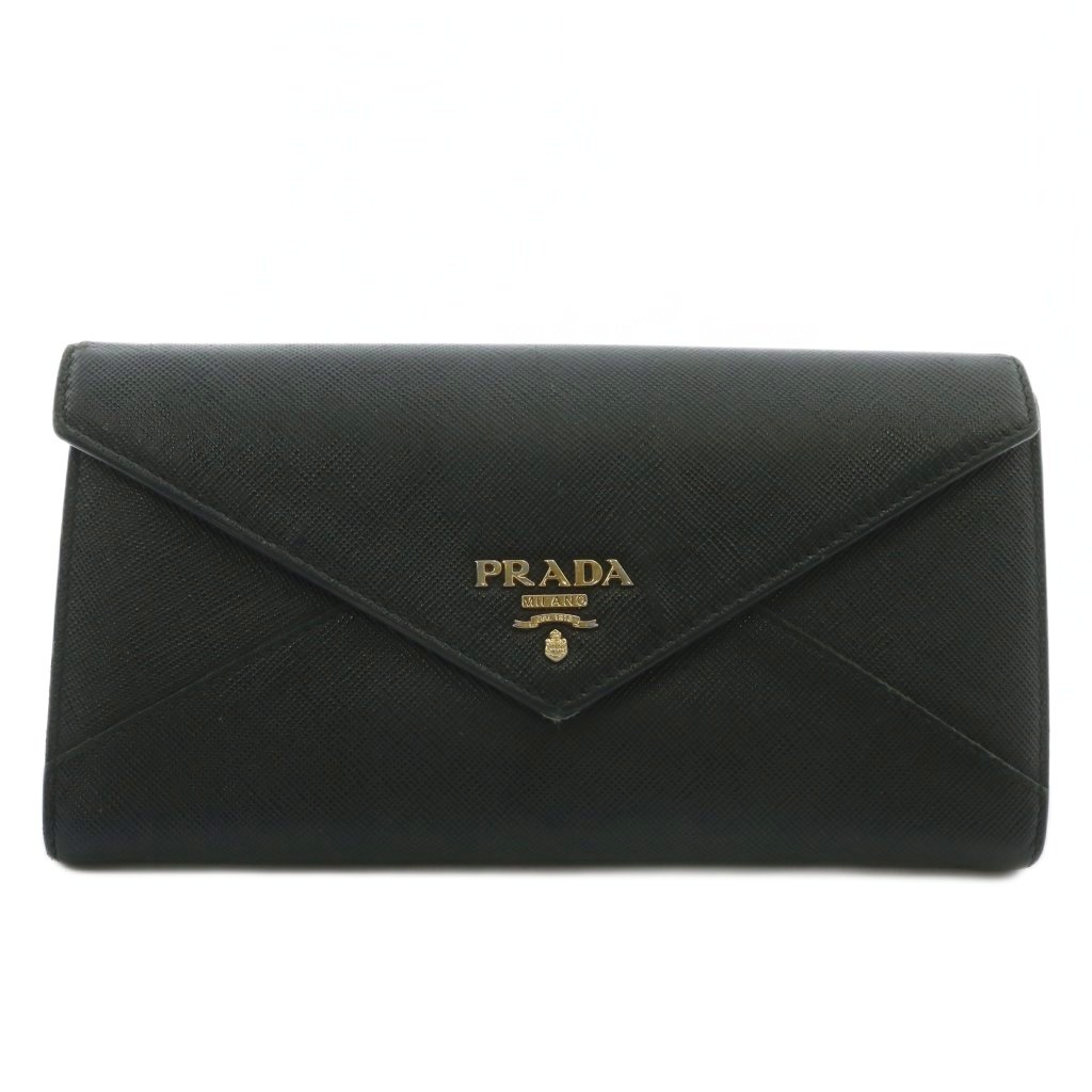 プラダ PRADA 長財布 二つ折り サフィアーノレザー ロゴ ゴールド金具 黒 ブラック /XZ ■OH ■GY18 レディース