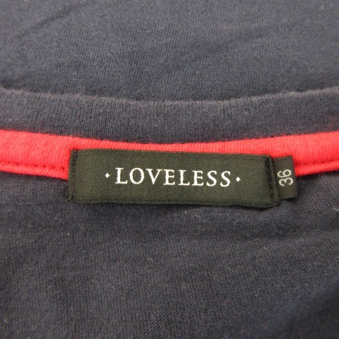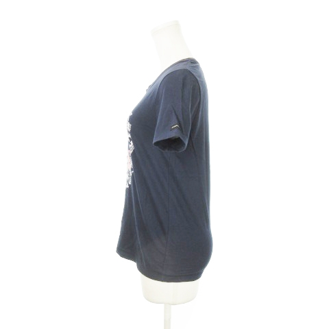 ラブレス LOVELESS 半袖Tシャツ ラウンドネック プリント スカル ハイビスカス ロゴ コットン 36 S 紺 ネイビー /AH6 レディース