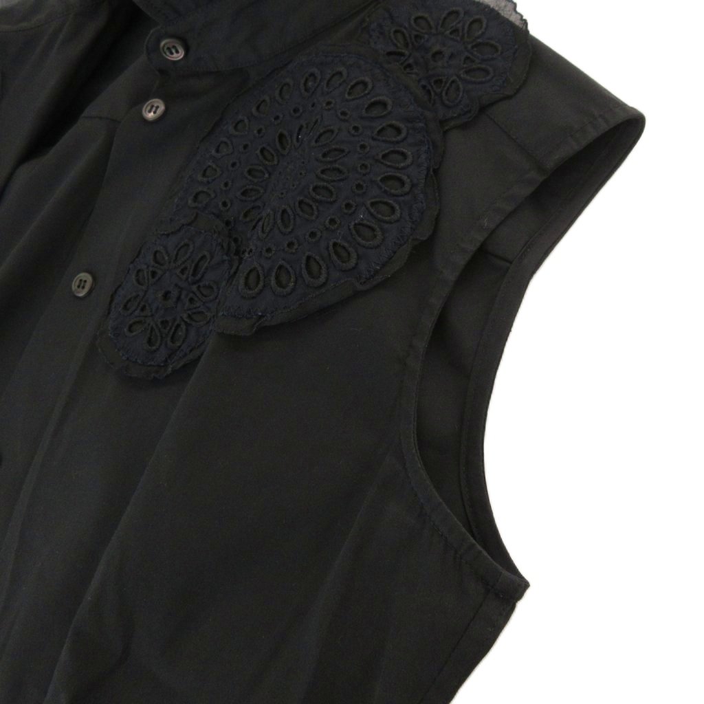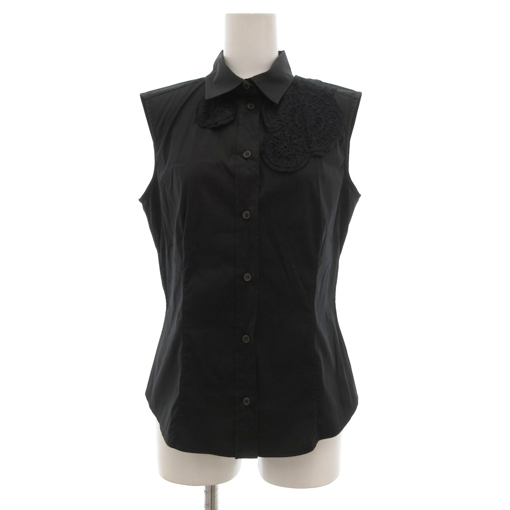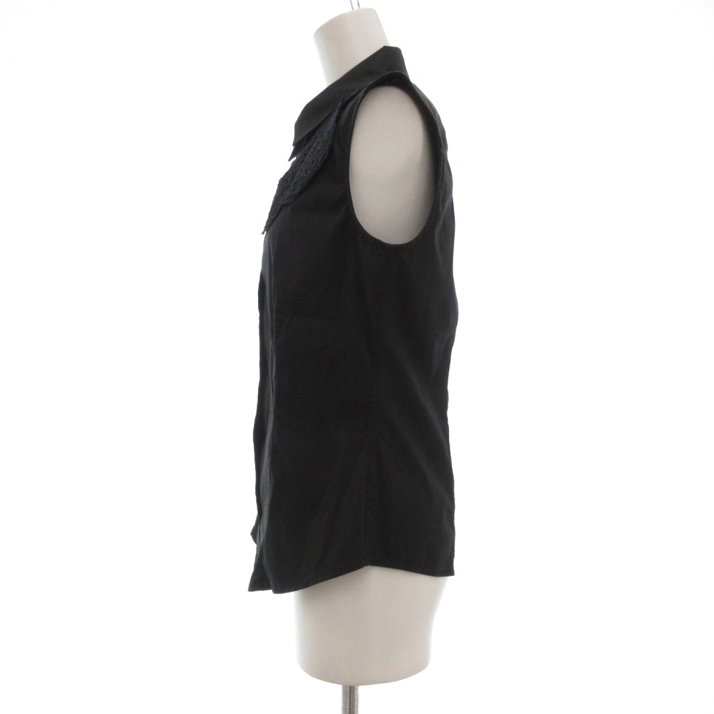 プラダ PRADA ノースリーブ ブラウス レースアップリケ 42 ブラック /UO レディース