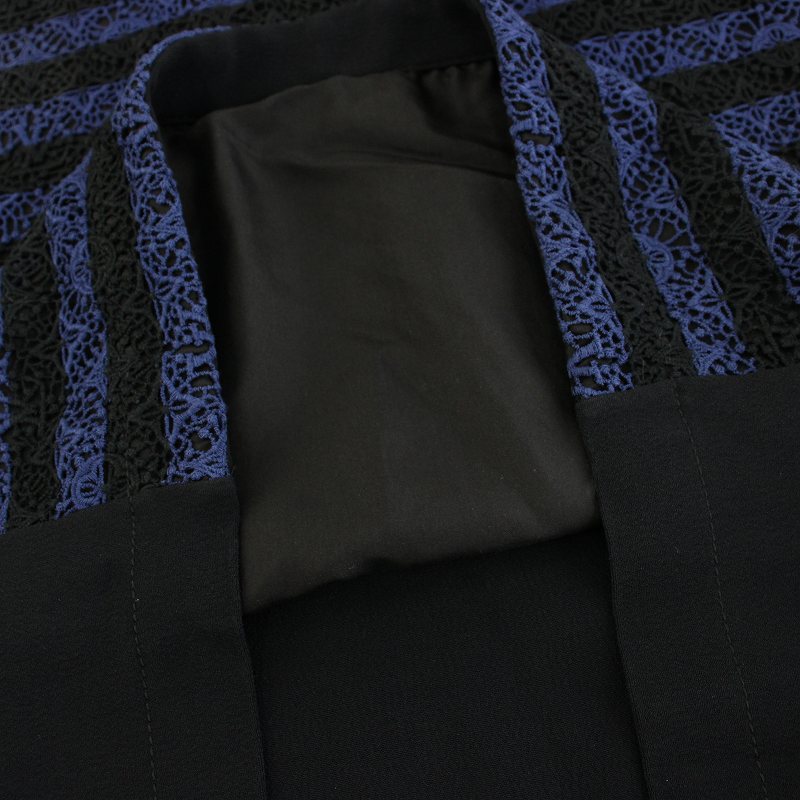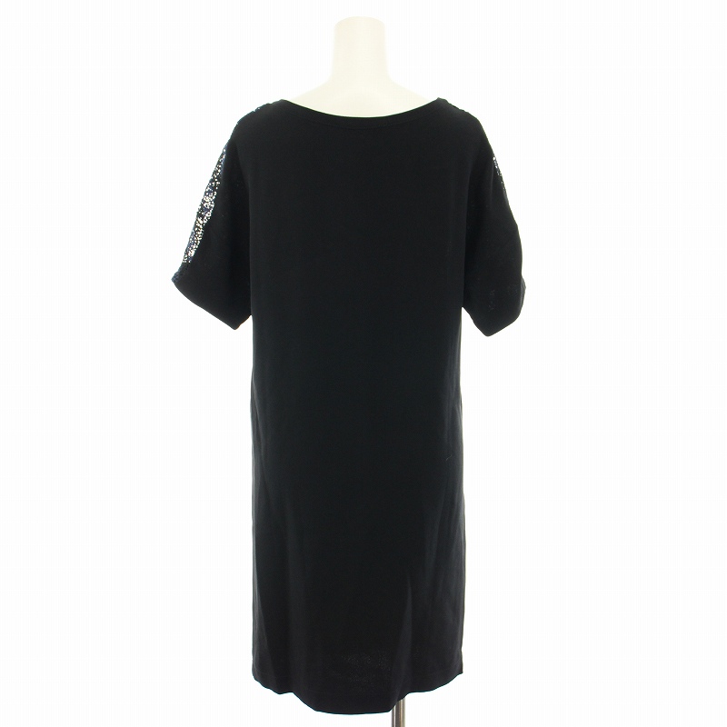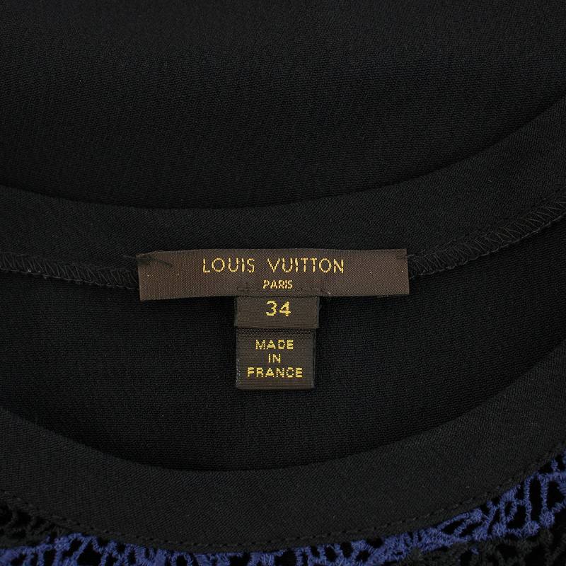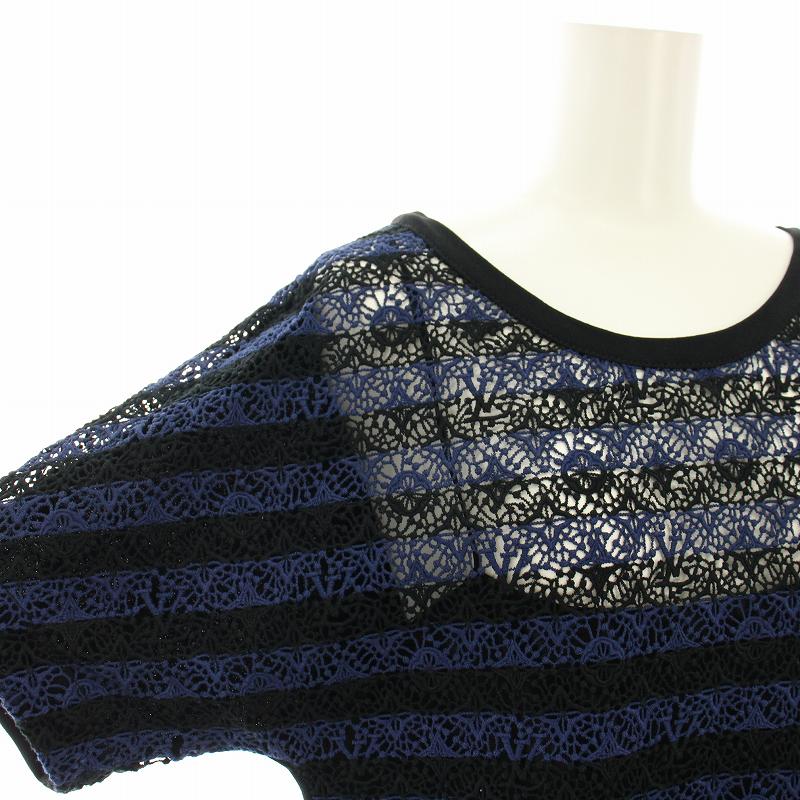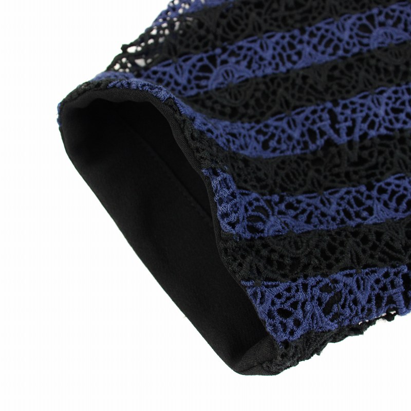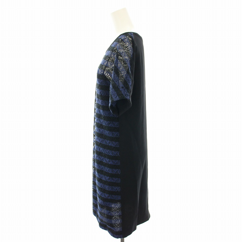 ルイヴィトン LOUIS VUITTON ワンピース ひざ丈 半袖 モノグラムフラワー ボーダー柄 レース 絹 シルク 34 紺 ネイビー 黒 ブラック RW141W F5DR05B85 /YT レディース