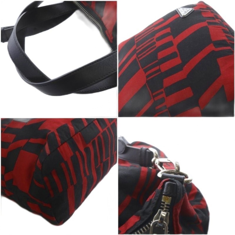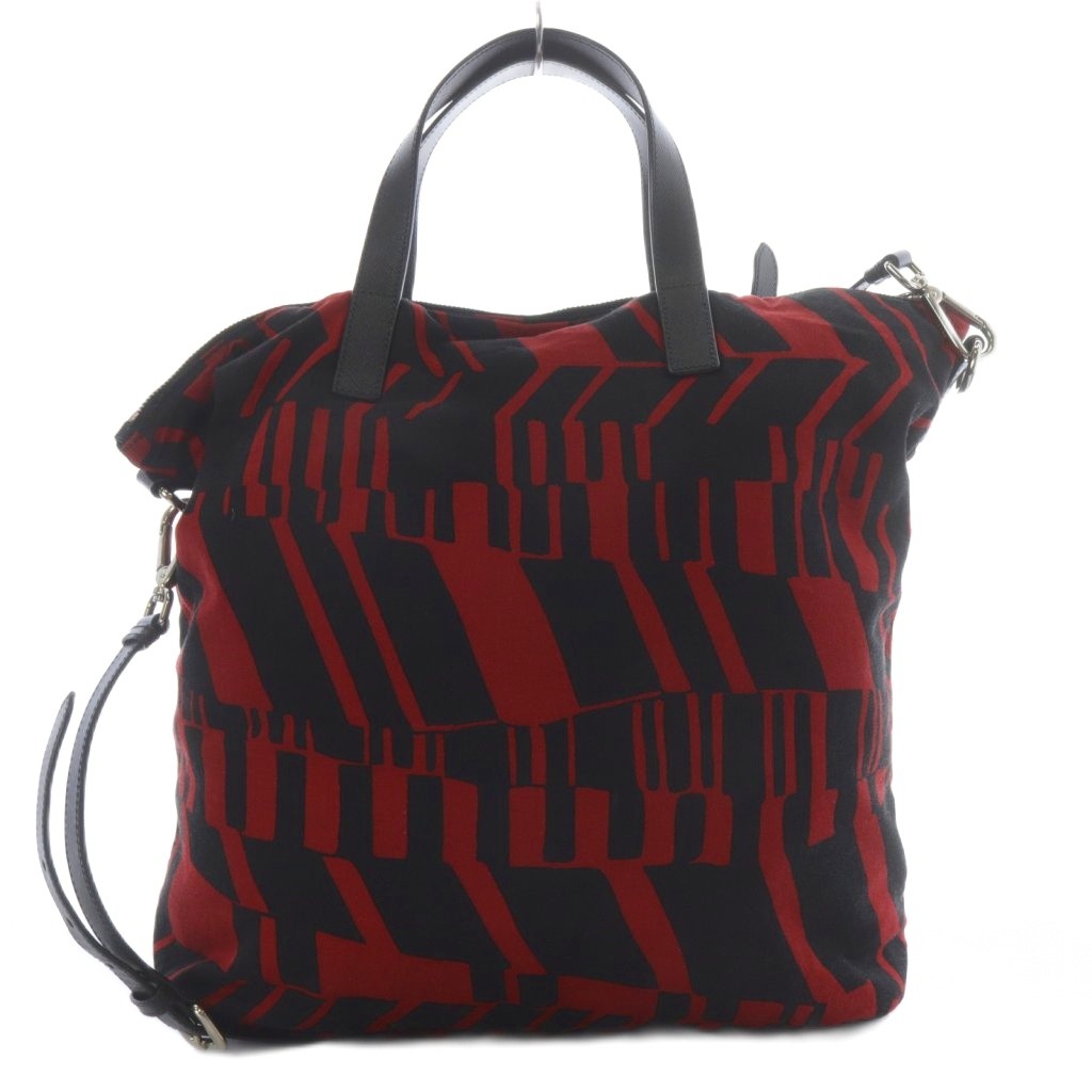 プラダ PRADA トートバッグ ショルダーバッグ 2way 斜め掛け 三角ロゴプレート レッド ブラック /YO22 ■OH メンズ レディース