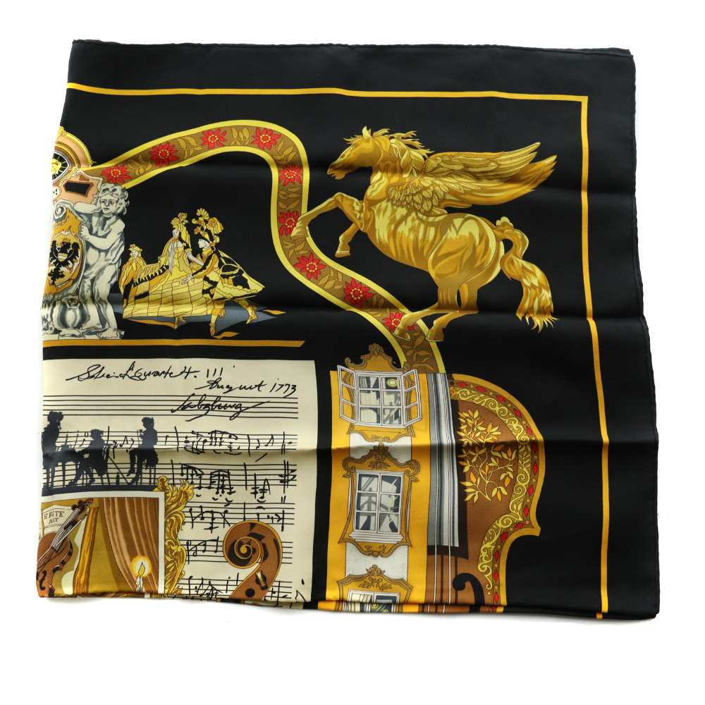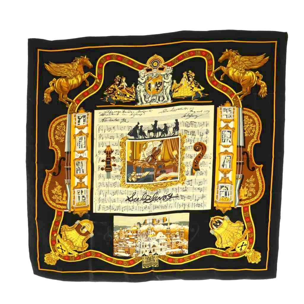 エルメス HERMES IN SALZBURG ザルツブルグにて カレ90 スカーフ シルク 黒 ブラック ゴールドカラー /SS ■OS ■OH レディース