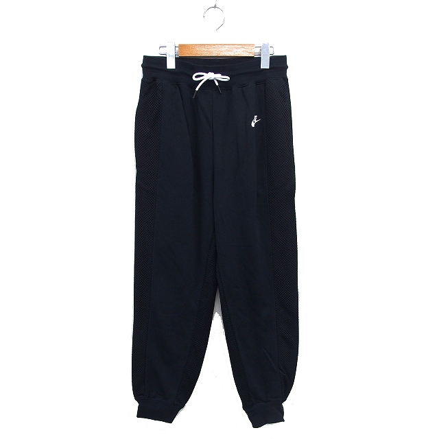 ナイキ NIKE 国内正規品 スポーツウェア メッシュ スウェット パンツ リブ ロゴプリント ドローストリング コットン 綿 M 黒 ブラック /NT22 レディース