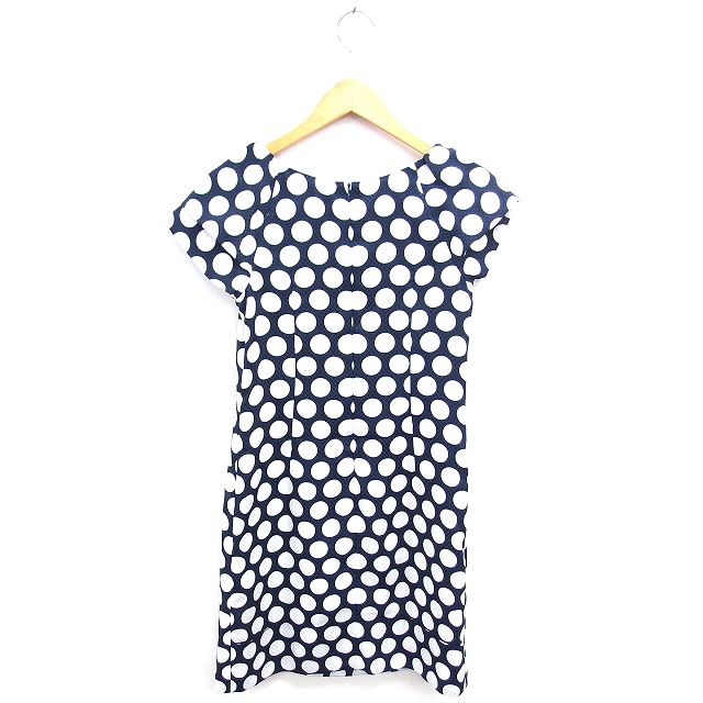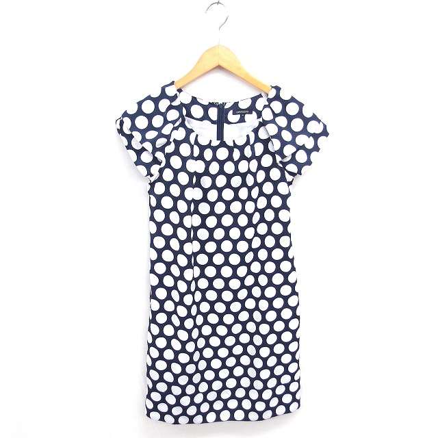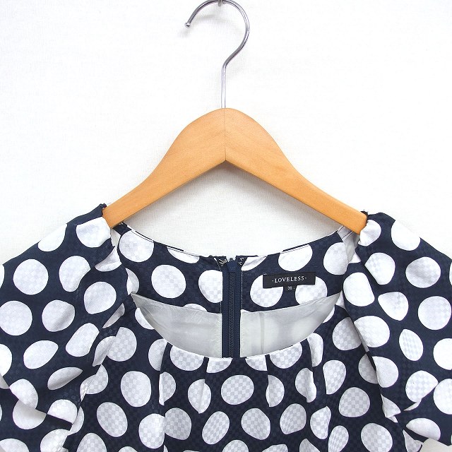 ラブレス LOVELESS ワンピース ひざ丈 水玉 プルオーバー ラグランスリーブ 半袖 36 ネイビー ホワイト 紺 白 /TT レディース