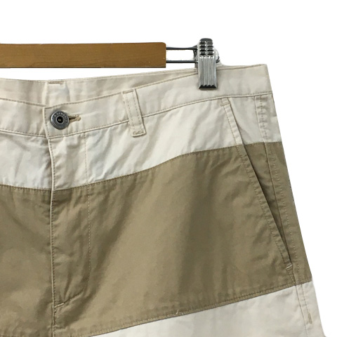 アールニューボールド R.NEWBOLD パンツ ワイド ハーフ ショート ロールアップ バイカラー L ベージュ 茶 ブラウン メンズ
