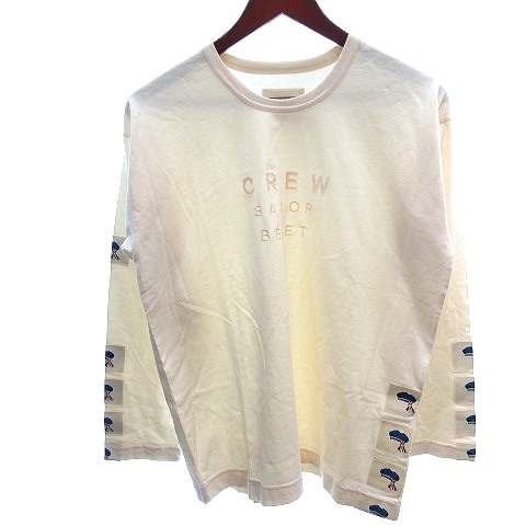 ケティ KETTY カットソー Tシャツ ロンT Uネック オーバーサイズ プリント 刺繍 長袖 M 薄橙色 ペールオレンジ /AU レディース