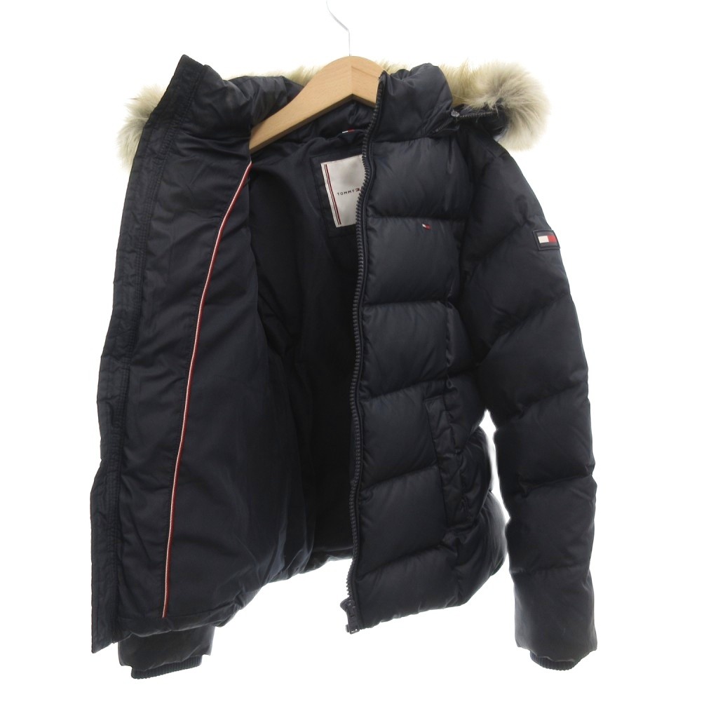 トミーヒルフィガー TOMMY HILFIGER ダウンジャケット 128 紺 ネイビー フード付き ファー付き 長袖 /HW ■GY61 キッズ