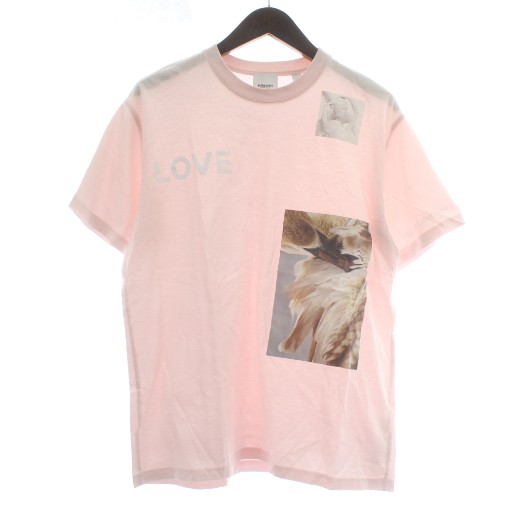 バーバリー BURBERRY Tシャツ カットソー 半袖 クルーネック モンタージュ LOVE プリント オーバーサイズ XS ピンク /XZ メンズ