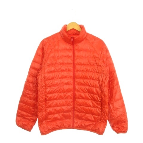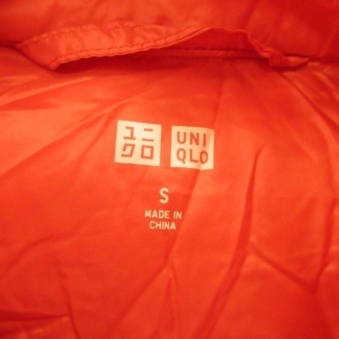 ユニクロ UNIQLO ダウンジャケット S オレンジ 無地 スタンドカラー 長袖 ポーチ付き /AH12 ■GY61 メンズ